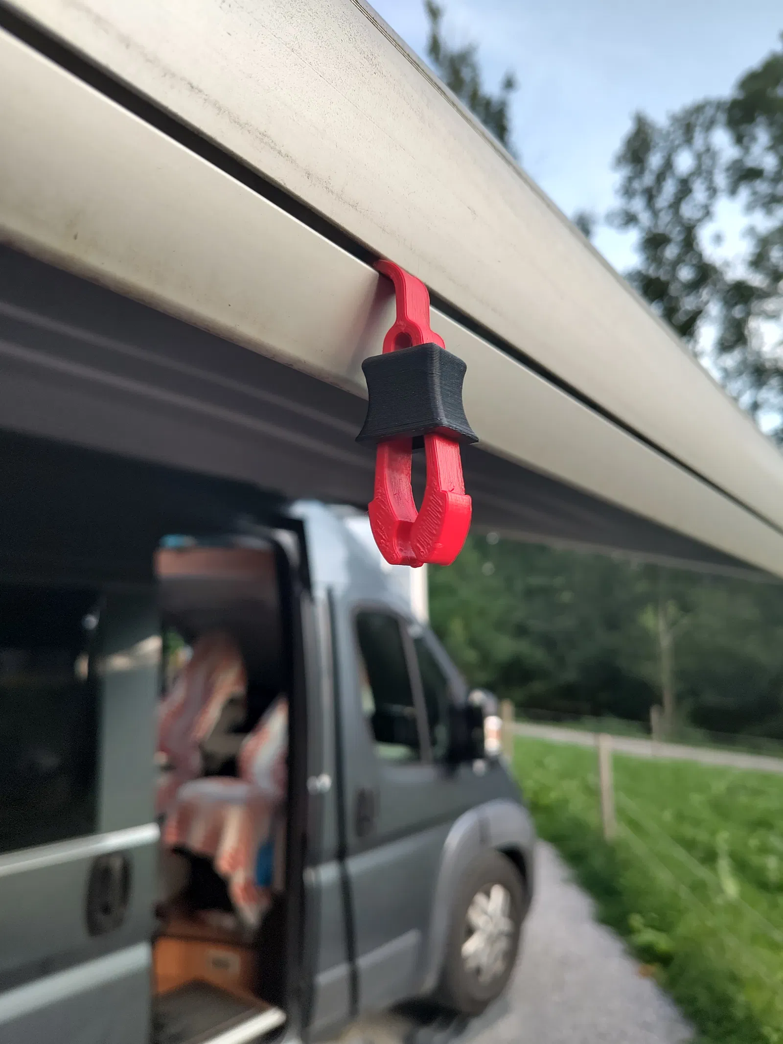 Phiên bản Kẹp Mái Che (Markisenklammer) B ôm sát hơn, giữ vật liệu tốt hơn, có thể in bằng ASA hoặc PETG mà không cần support. Phù hợp cho đường ray keder trên mái che của xe campervan, caravan.