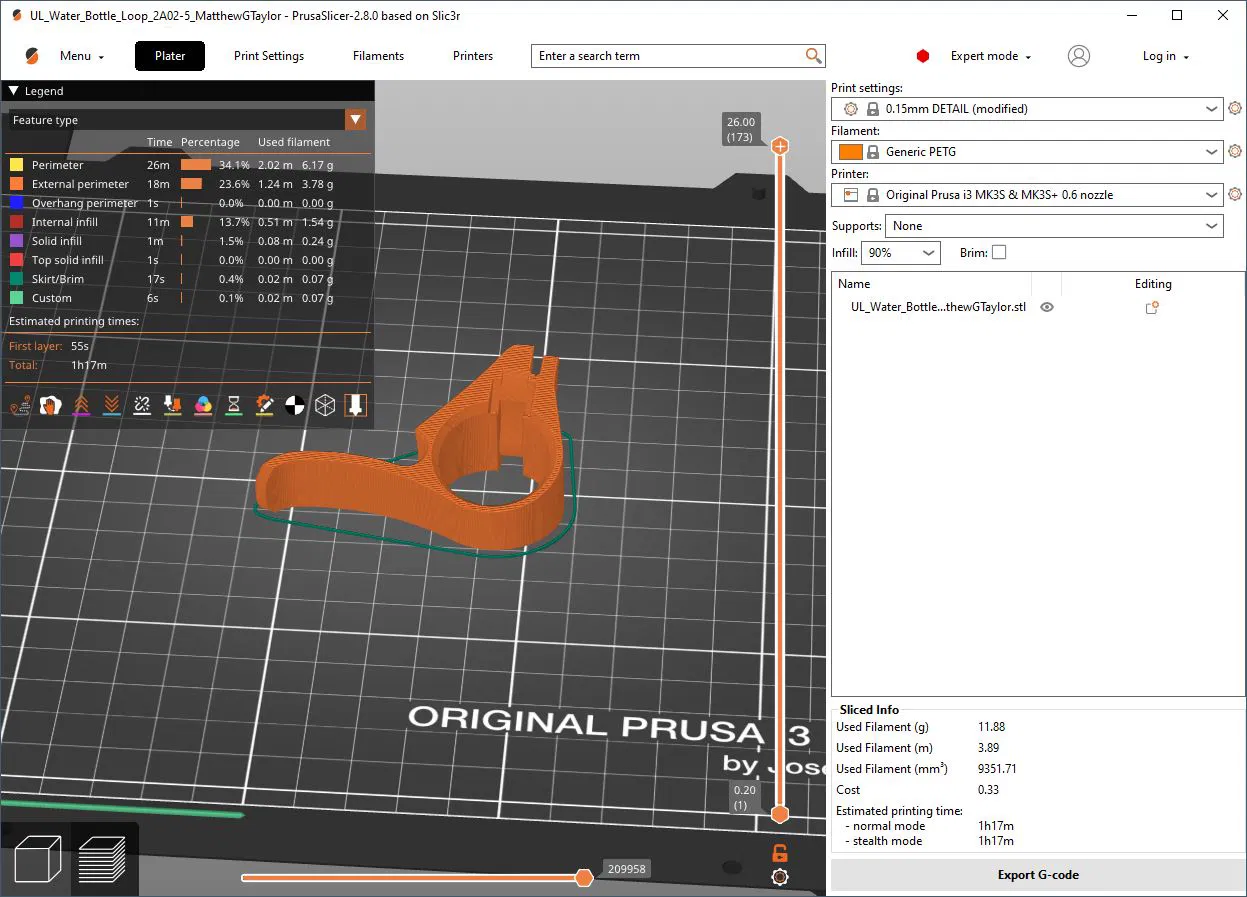 Hướng dẫn in | Nên dùng vật liệu PETG. In với 3 lớp viền, độ cao lớp 0.2mm hoặc nhỏ hơn sẽ cho kết quả đẹp nhất. Đặt một mặt phẳng lên khay in. In sạch sẽ không cần support.