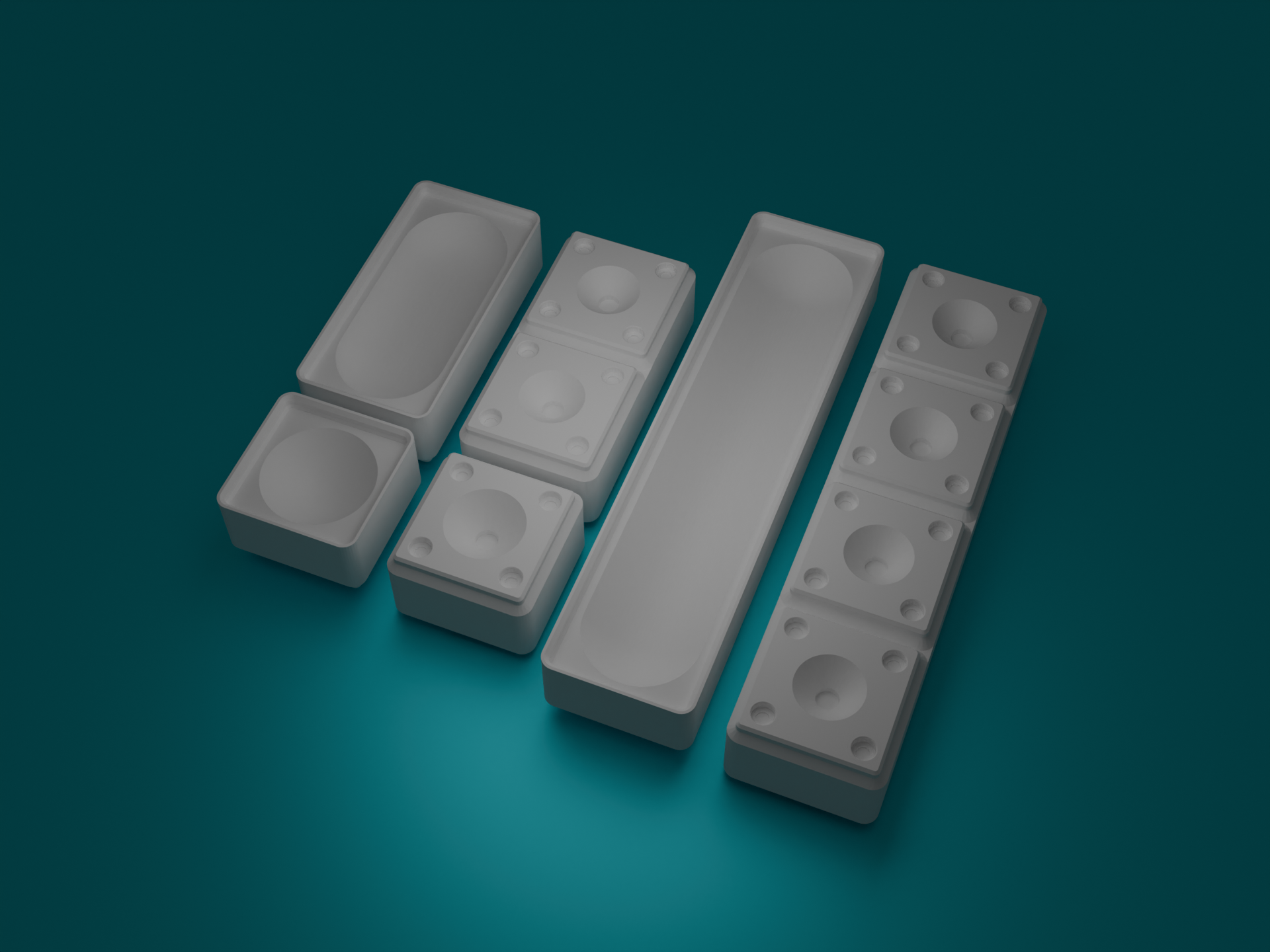 Mình đã chỉnh sửa lại mẫu tô 1x1, 1x2 và 1x4 của ethanthompson để tích hợp nam châm, giúp gắn tô vào đế có nam châm cũng như định vị nam châm để từ hóa tô và vật dụng bên trong. Điều này rất hữu ích để giữ các vật dụng như ốc vít không bị rơi ra khỏi tô.