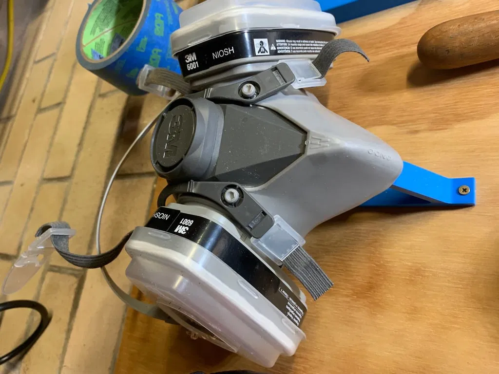 Giá đỡ đơn giản cho khẩu trang/mặt nạ phòng độc 3M Safety Paint Project của tôi. Sử dụng ốc 4G để gắn vào bảng sau.