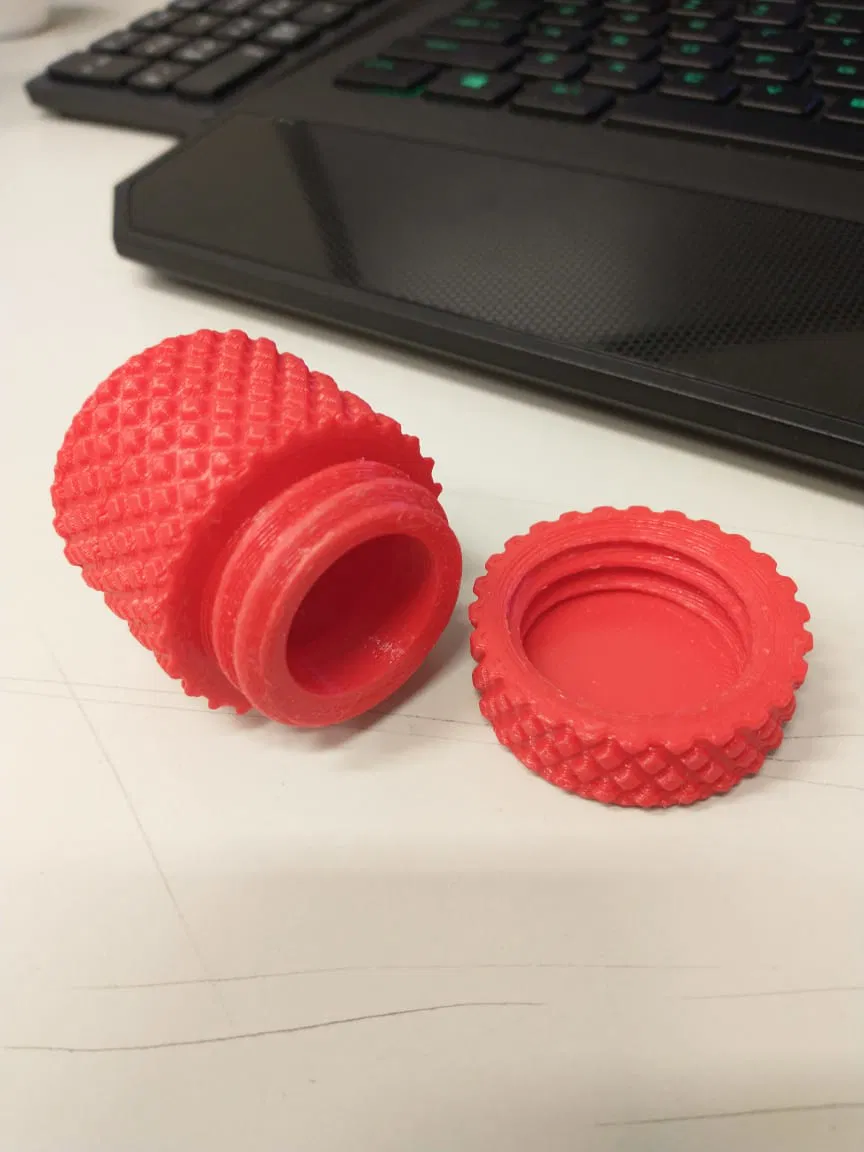 Một cái hộp hình trụ để đựng mấy món đồ nhỏ. Kích thước: Ø40 x 43,5 mm. Thích hợp để in với PLA, không cần support. Thiết kế có vân vặn ren độc đáo, vừa cầm chắc tay vừa nhìn hay.