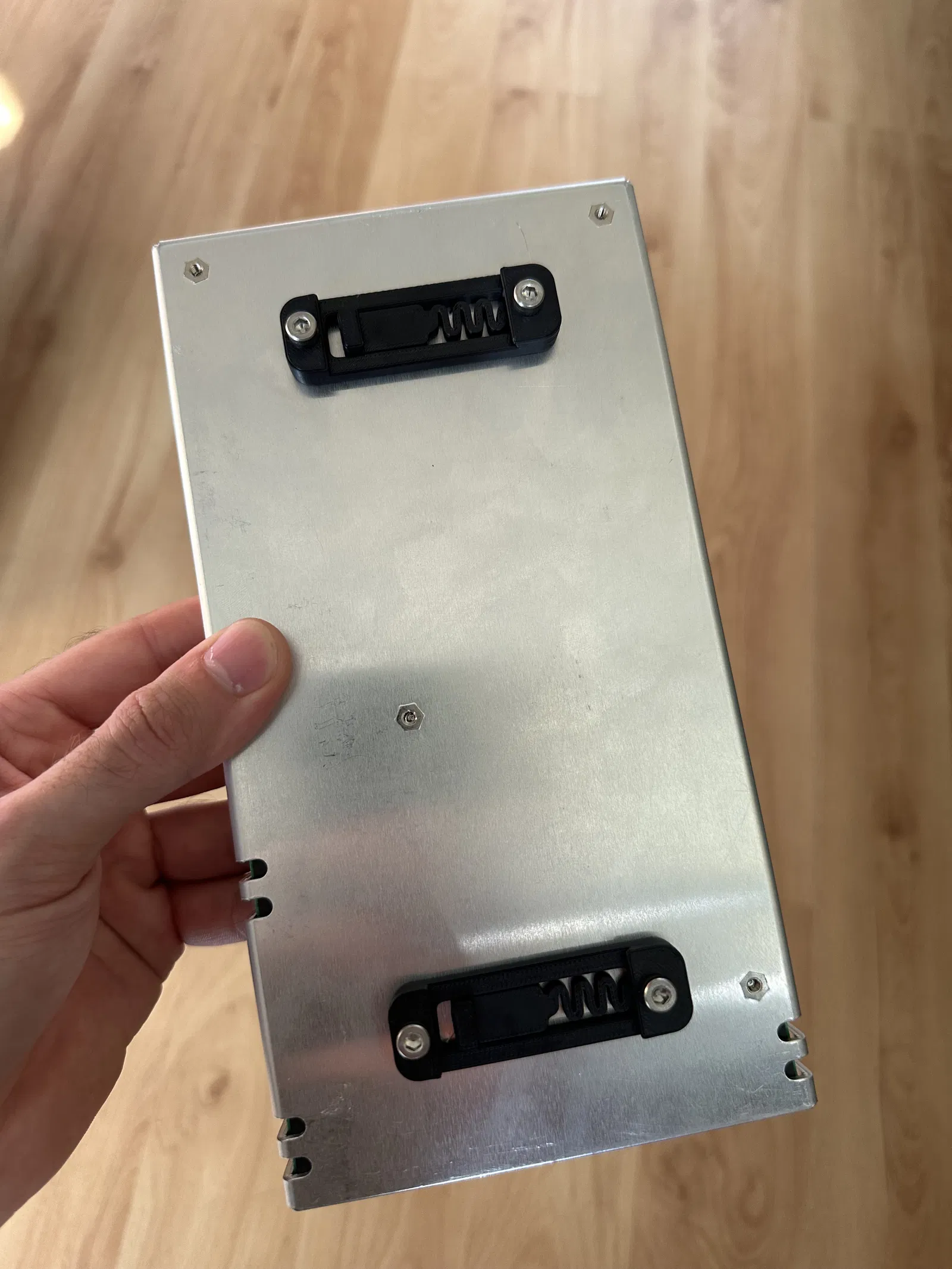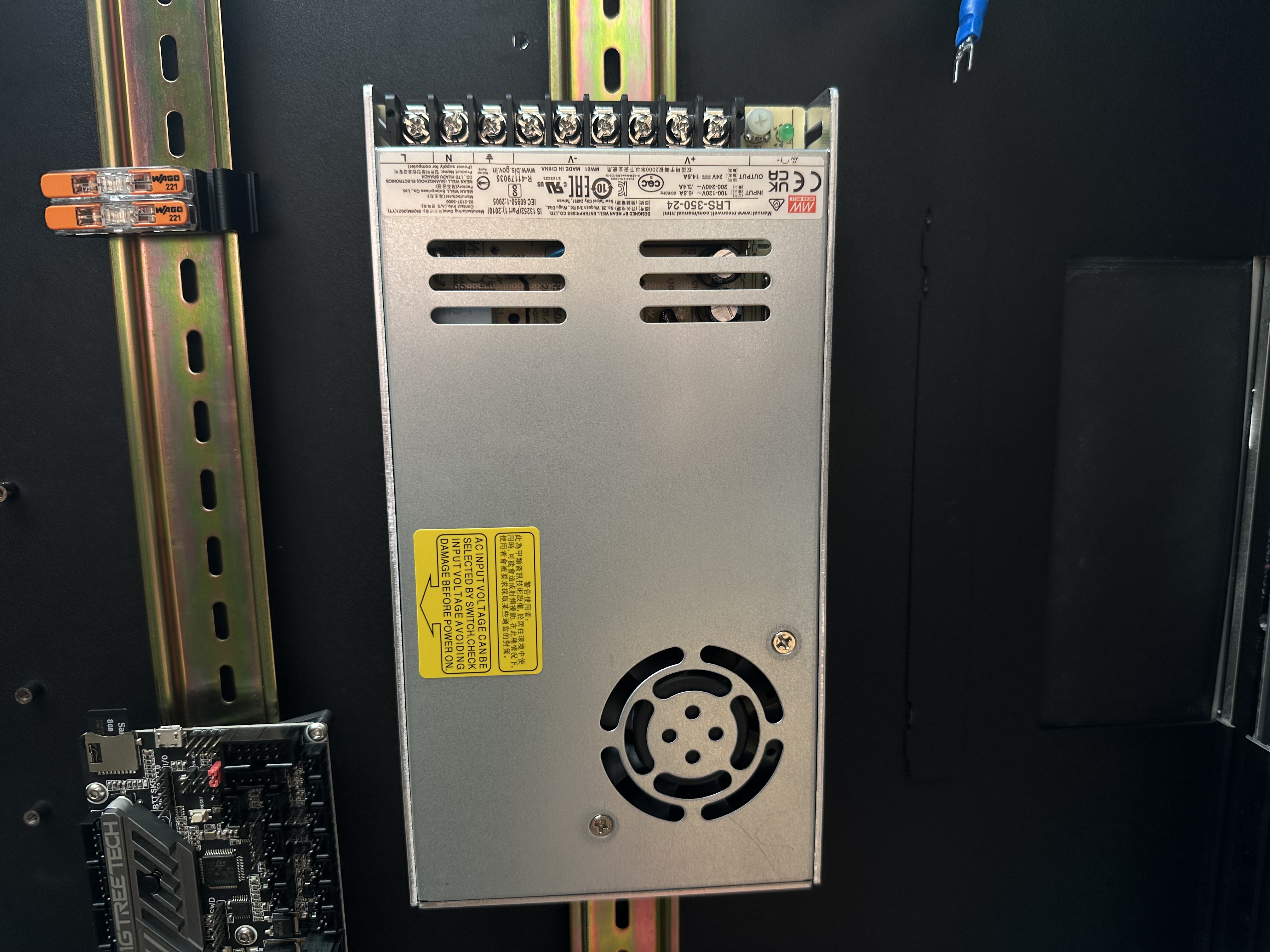 Kiểu dáng Voron, đế gá ray DIN đơn giản cho nguồn Meanwell (các hãng khác có khoảng cách lỗ 50mm cũng xài được nha).