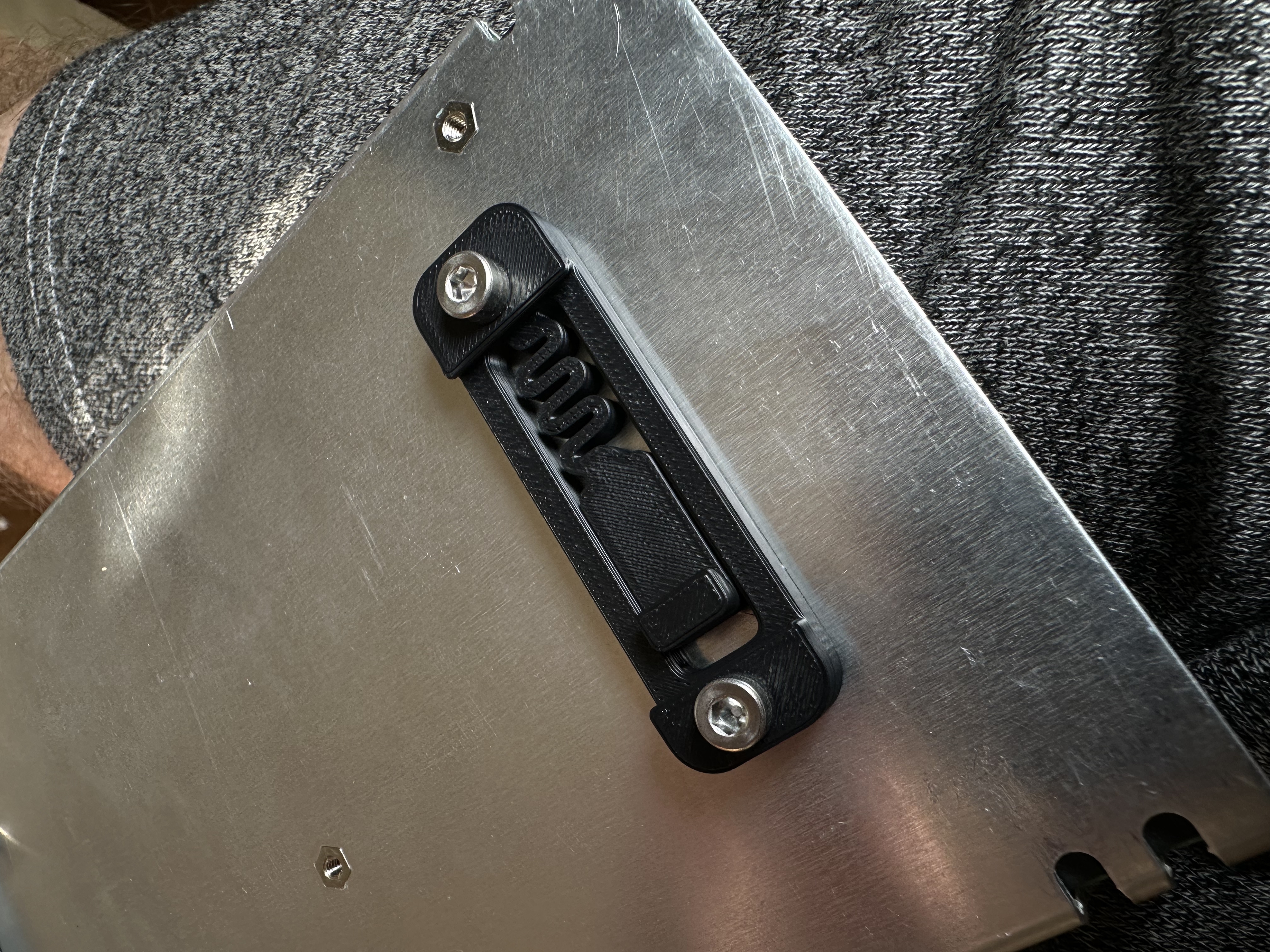Đế gá nguồn Meanwell LRS-350 kiểu dáng Voron, thiết kế đơn giản, gắn ray DIN tiện lợi. Phù hợp với nhiều loại nguồn có khoảng cách lỗ 50mm. In bằng ASA hoặc các vật liệu khác đều tốt.