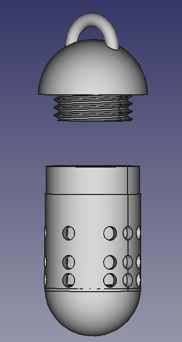 Đây là lần đầu mình tạo sản phẩm bằng FreeCAD, một loại rỏ/hủ mồi xoay được, có lỗ để mồi câu tự động rơi ra. Sản phẩm làm bằng PLA, bạn có thể chỉnh sửa file FreeCAD nếu cần.