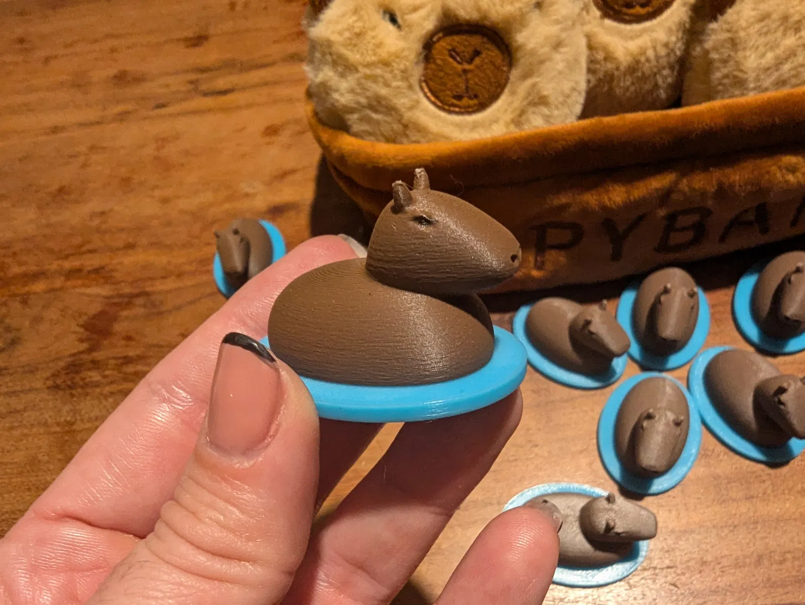Mô hình capybara bé xíu, siêu xinh, cực kỳ hợp để làm quà tặng sinh nhật hay bỏ vào túi quà cho khách hen! Mấy đứa bạn của con gái tui mê tít luôn. In dễ lắm, xài máy in một đầu phun cũng được, chỉ cần đổi màu dây tóc lúc in là có hiệu ứng nước y như thật.