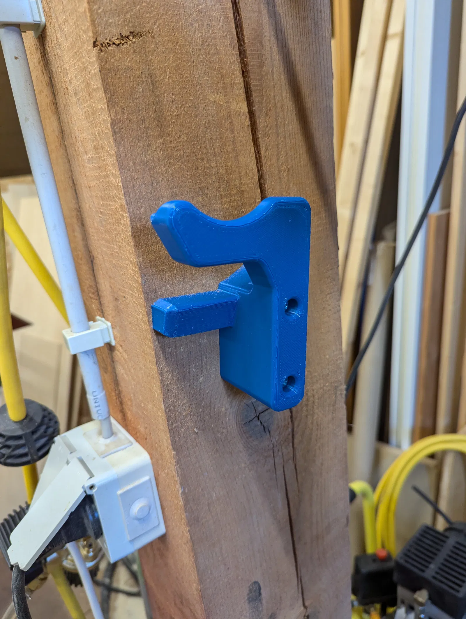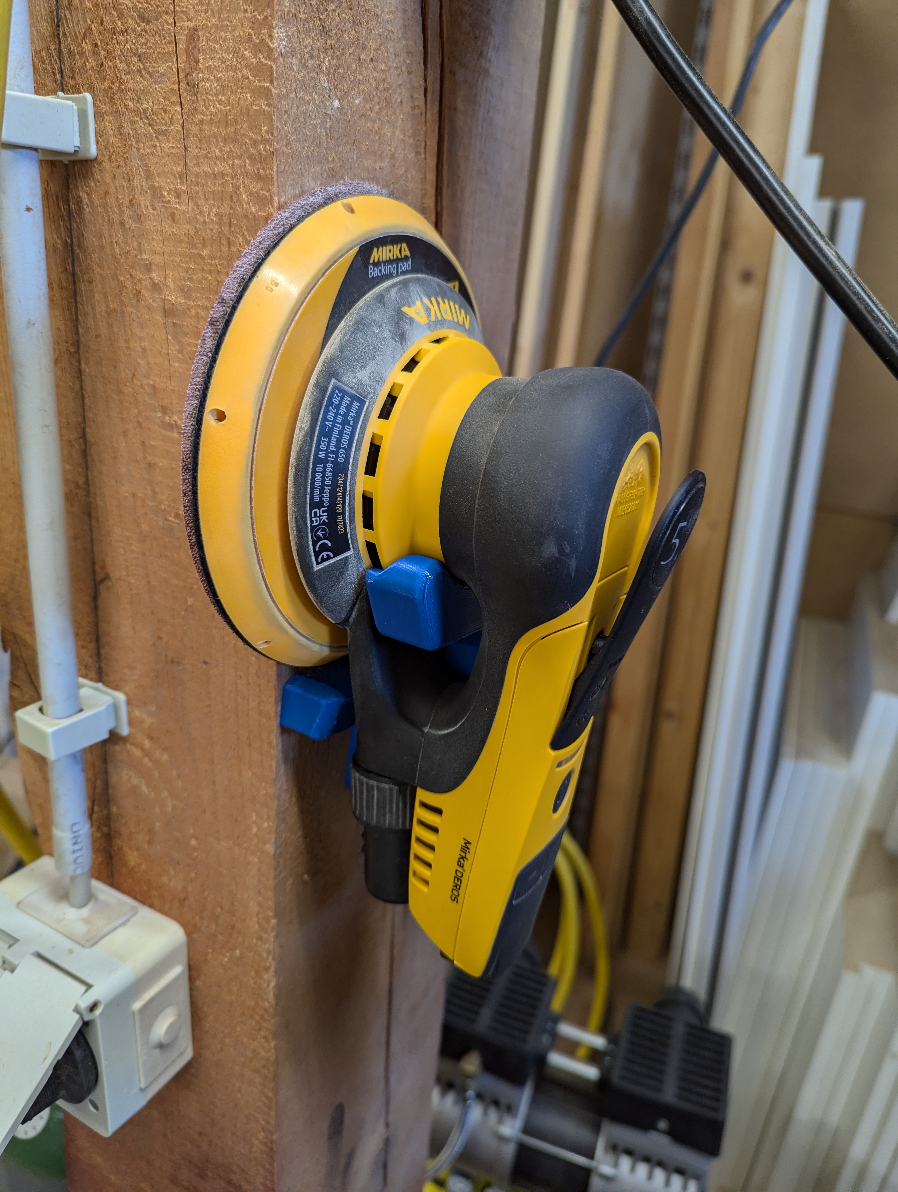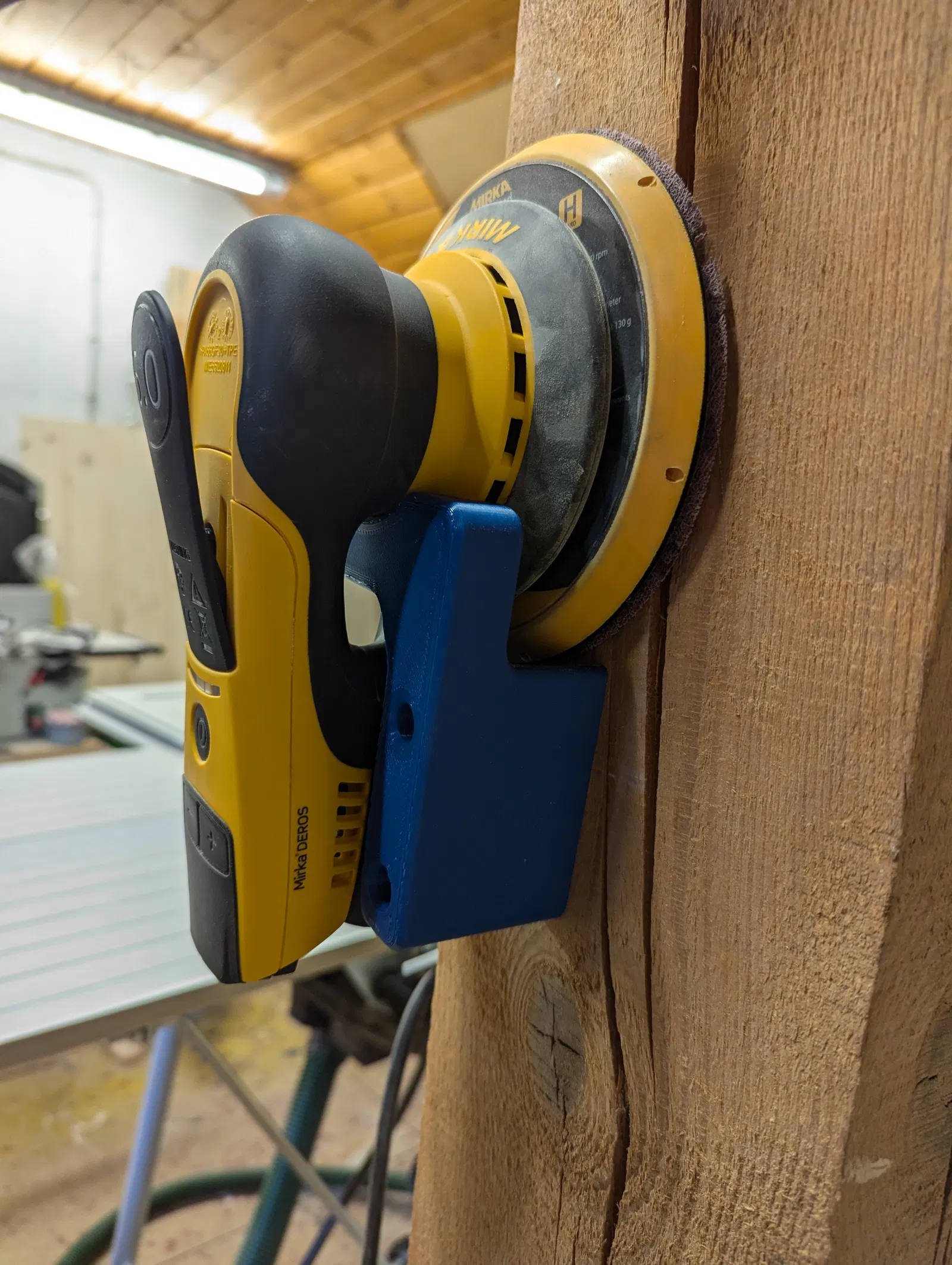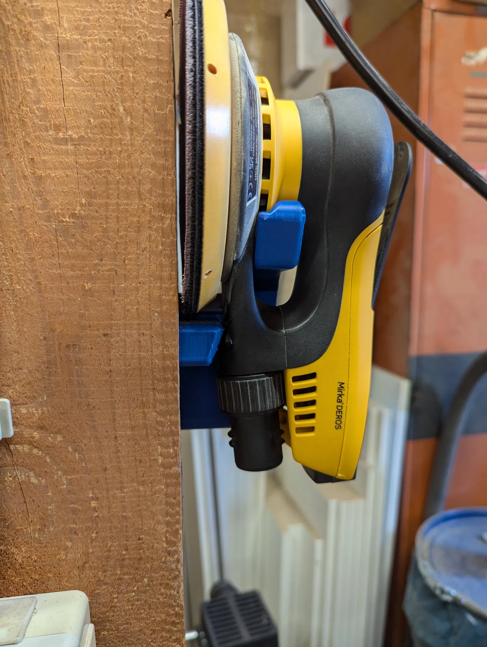 Đây là cái bracket để treo cái Mirka Deros lên tường nè, khỏi lo làm hư cái đĩa chà nhám của nó.