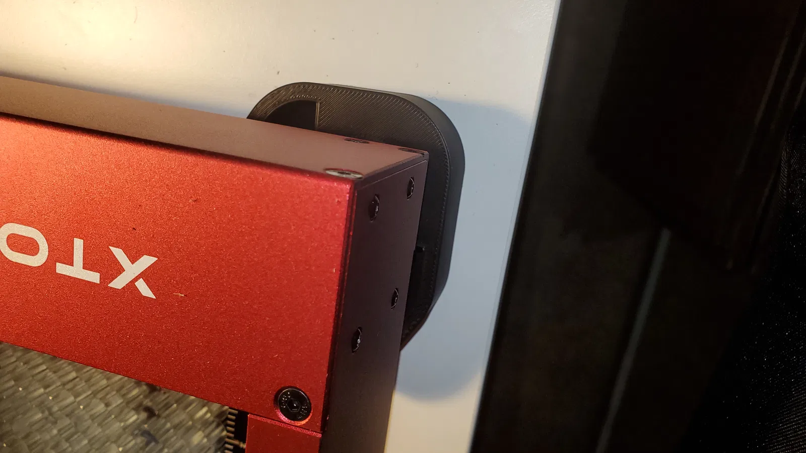 Giá đỡ để định tâm tấm honeycomb bên dưới laser cho XTool D1 Pro. Mấy cái giá đỡ này đặt vừa bên trong thùng máy, cho phép thùng máy có thể đặt phẳng trên bàn. Mình cũng có kèm theo mấy cái chân đôn cao 1 inch để nâng máy lên, sao cho khoảng cách từ laser tới mặt honeycomb bằng với khoảng cách khi máy không có honeycomb và chân đôn. Chân đôn cao 2 inch của XTool có thể đặt lên trên chân đôn 1 inch để cao thêm. Bạn cũng có thể in thêm một bộ chân đôn 1 inch nữa để cao thêm chút xíu.