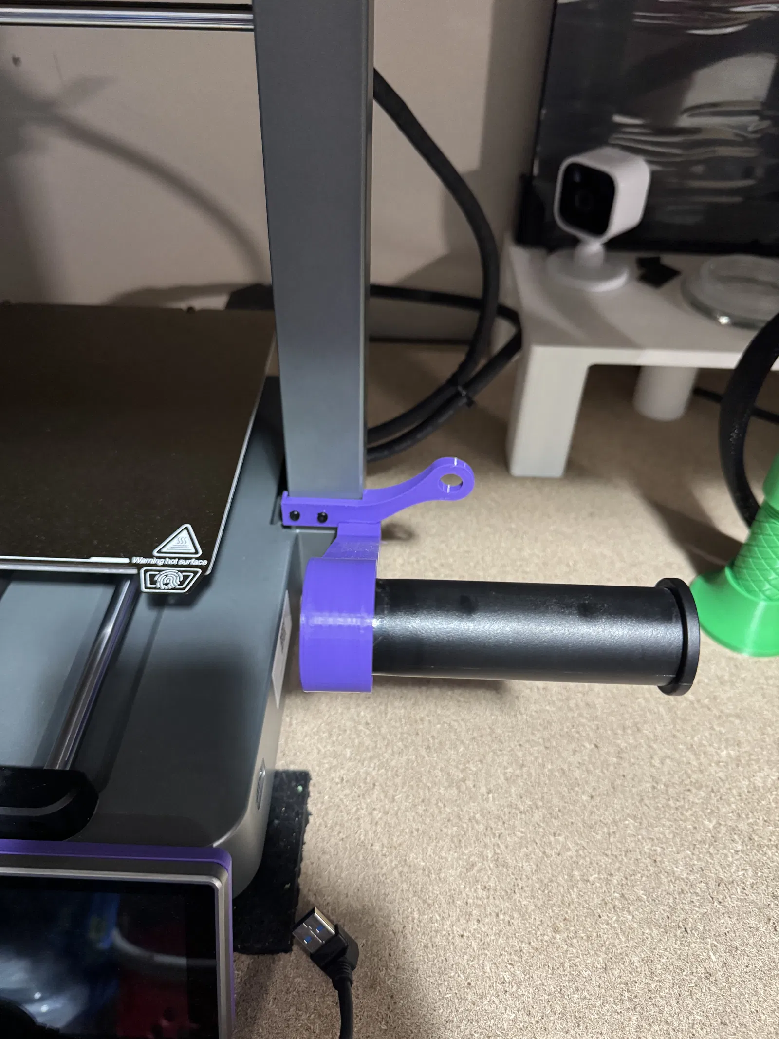 Cần một cái dẫn dây tóc (filament) cho Ender 3 V3 để dây không bị chạm khung hay cong quá. Bản thiết kế này gắn vừa với chỗ giữ cuộn dây in sẵn, làm bằng PETG, chỉ cần 2 con ốc M3 8mm là xài được.