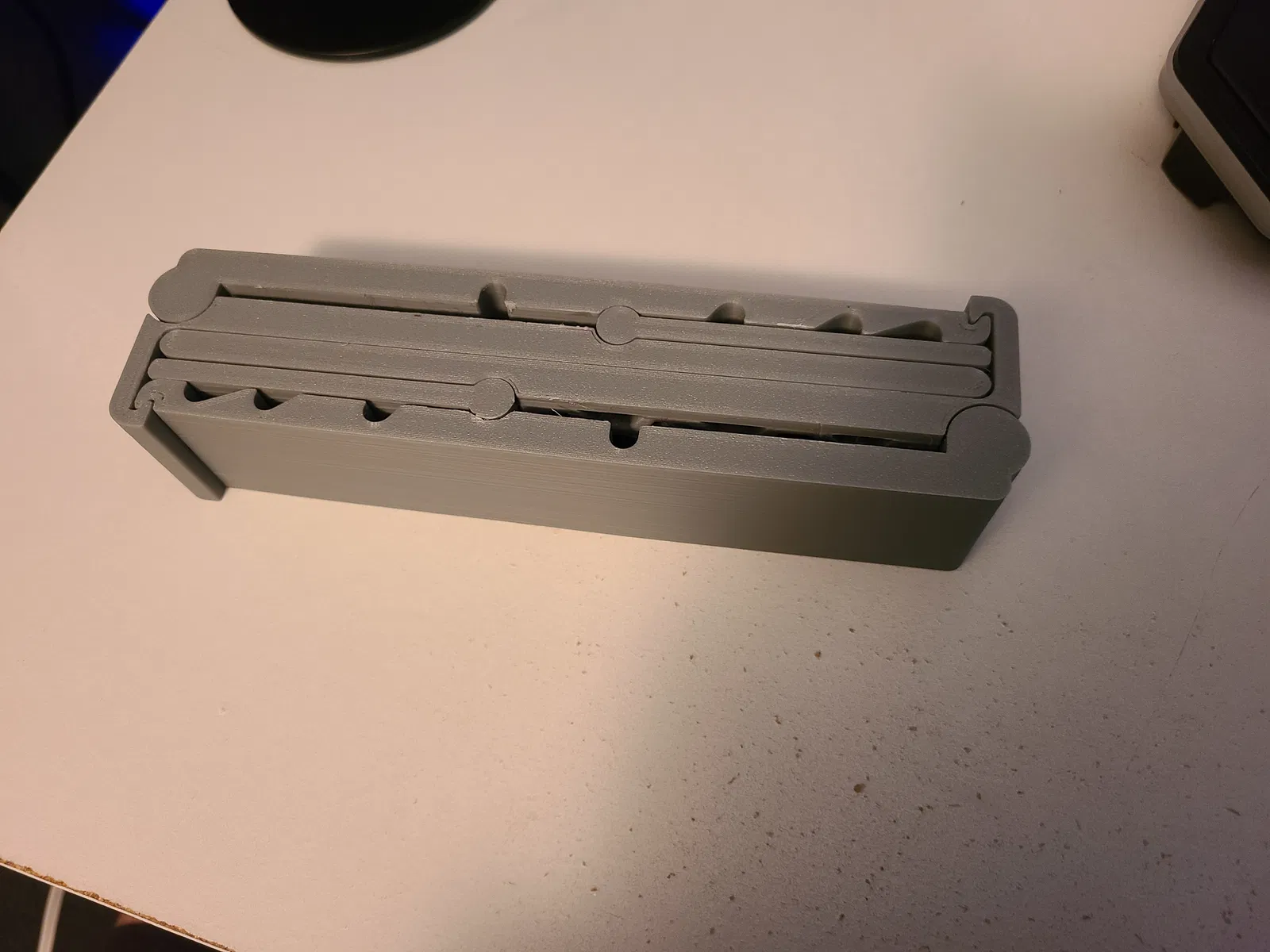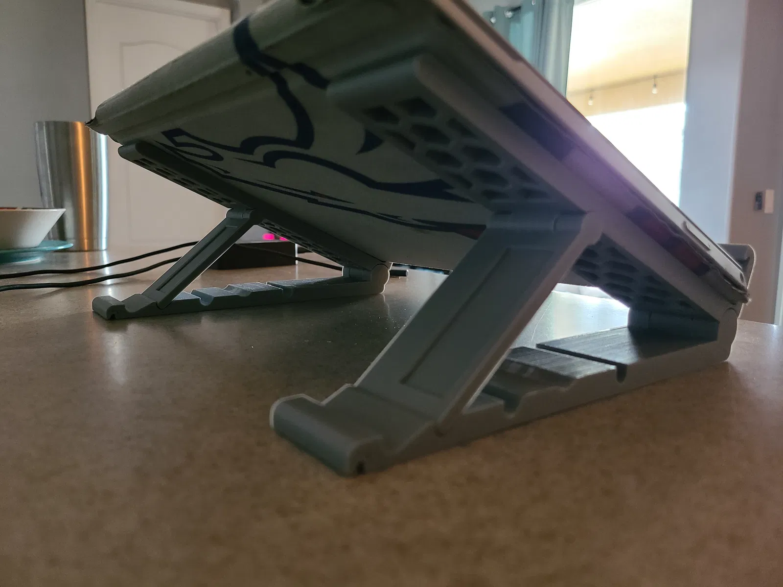 Tui đã thêm hoa văn dạng tổ ong vào để nó giúp laptop của bạn tản nhiệt tốt hơn mà không làm giảm nhiều độ bền. Tui cũng thích cái kiểu dáng của nó nữa. Giống như thiết kế gốc, hai phần có thể khớp với nhau để cất gọn trong ba lô của bạn. Tuy nhiên, có một lời cảnh báo, máy in 3D của tui được căn chỉnh rất tốt và tui vẫn phải dùng lực để tách khớp nối ở giữa ra. Tui khuyên bạn nên dùng một cái nêm để ép hai phần ra. Nếu bạn dùng nêm, thì máy in của bạn không cần phải căn chỉnh hoàn hảo 100% đâu.