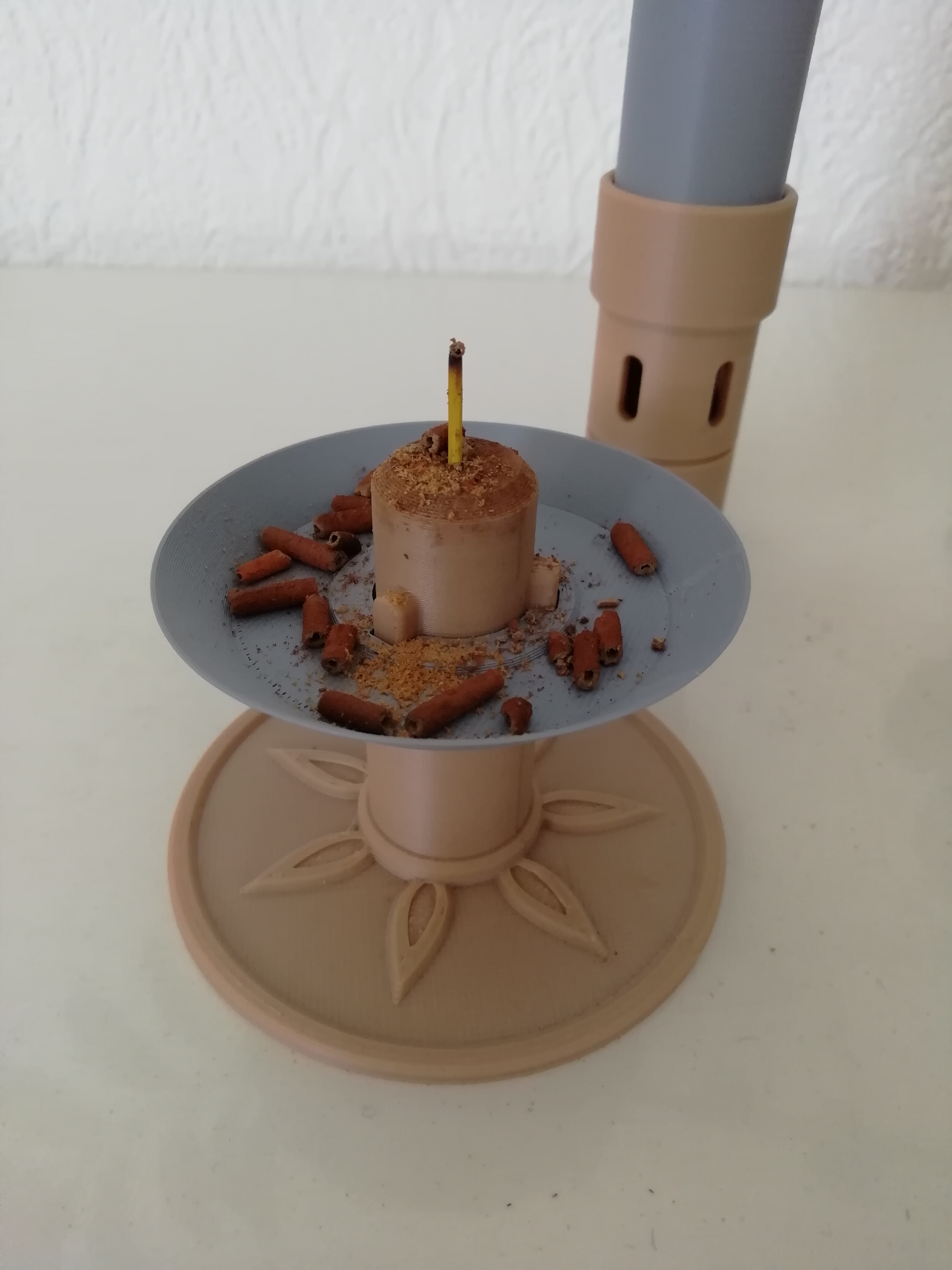 Thỉnh thoảng tôi có đốt nhang. Tôi có một cái gác nhang mà cây nhang được đặt nghiêng. Và vì nó không lớn lắm nên tôi thường làm bừa bộn khi cố gắng dọn tàn nhang. Vì lười nên tôi đã nảy ra một ý tưởng và khởi động Fusion360. Cái gác nhang trông sành điệu này là kết quả, nó hoạt động cho đến nay… và tôi muốn chia sẻ nó ở đây.