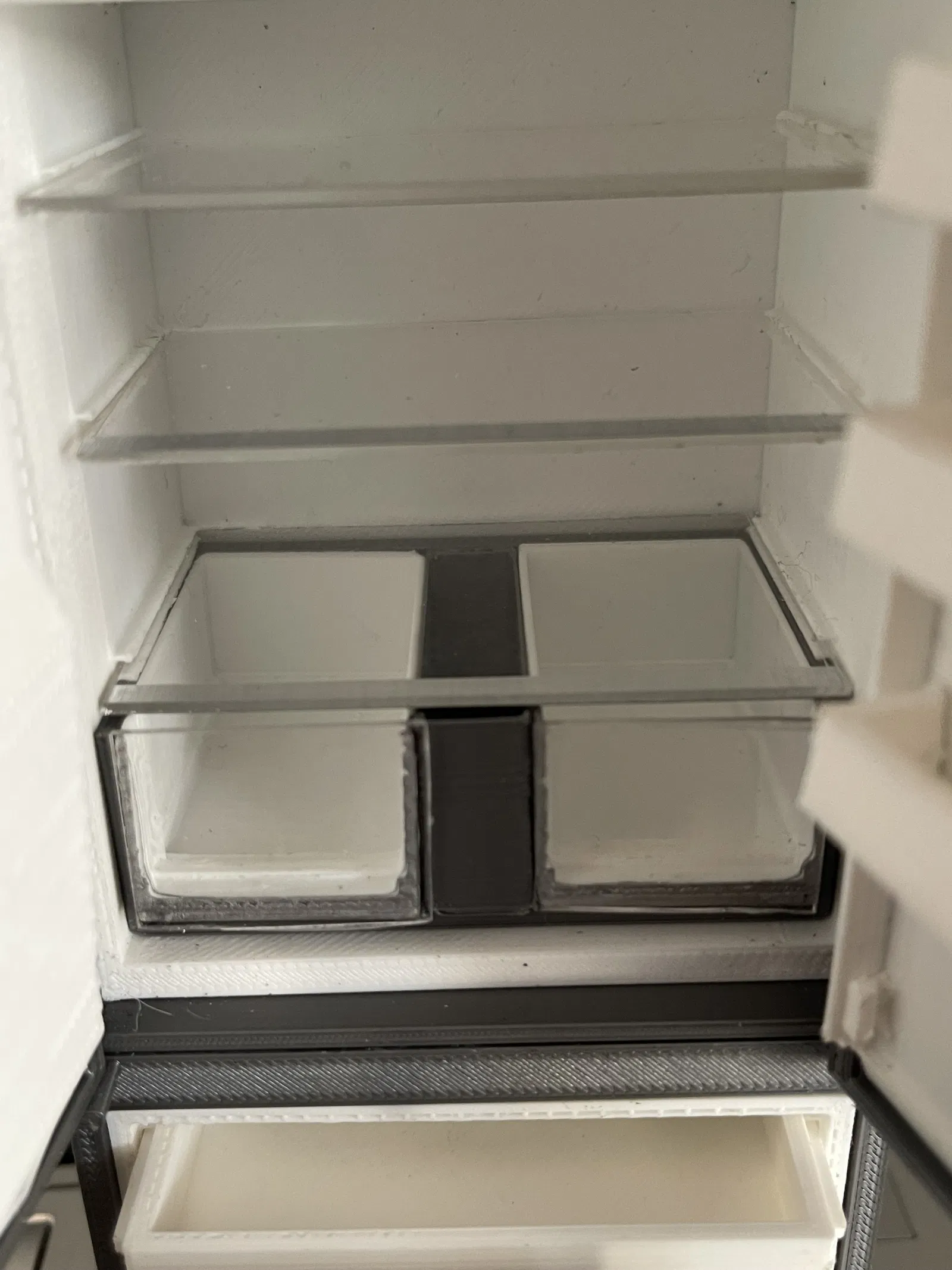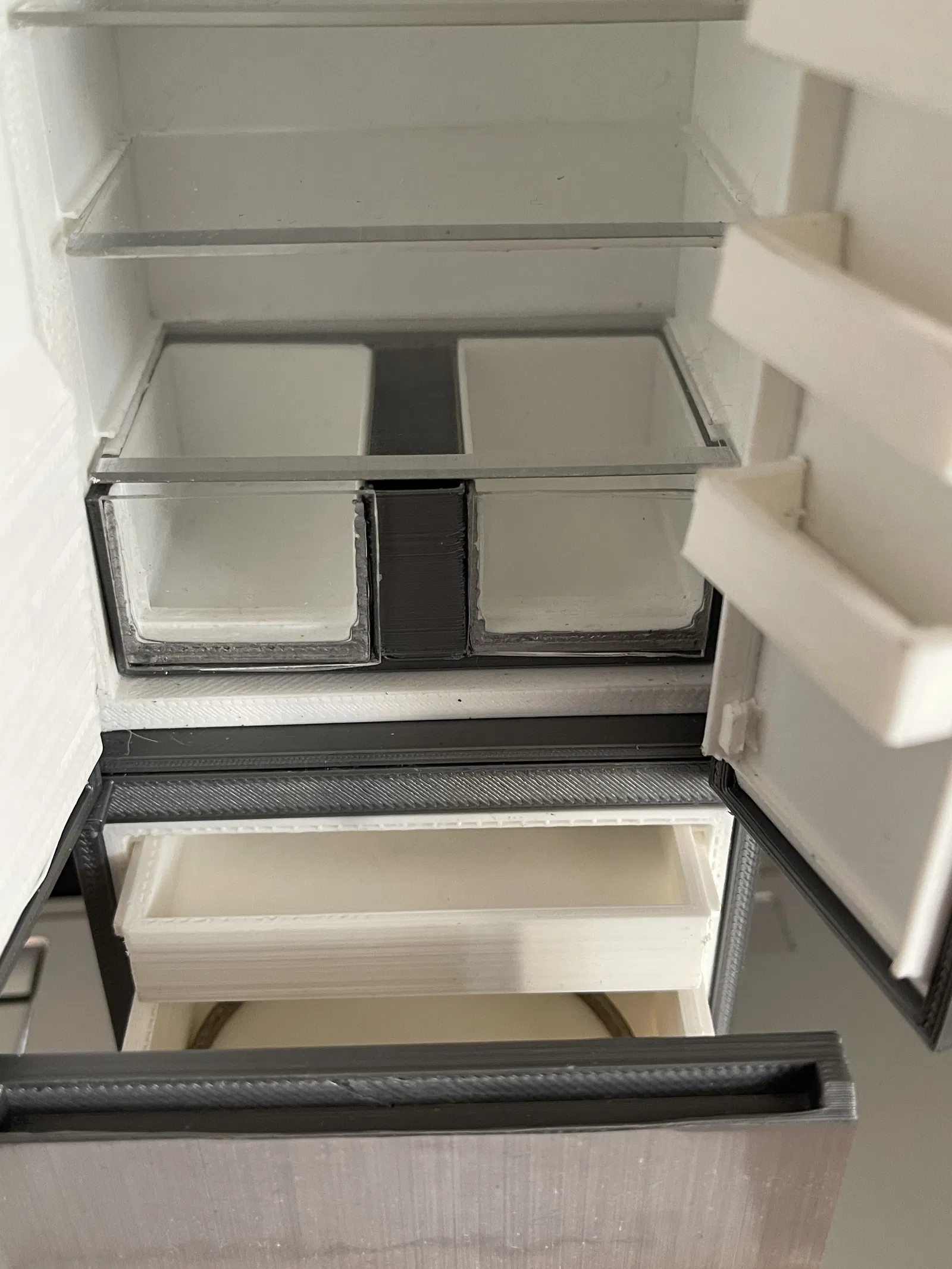 Mô hình tủ lạnh mini theo tỉ lệ 1:12, lấy cảm hứng từ mẫu Haier. Sản phẩm được in bằng PLA, kết hợp giấy kim loại và acrylic để tạo hiệu ứng chân thật, giống y như thật. Thích hợp cho những ai đam mê mô hình nhà búp bê.