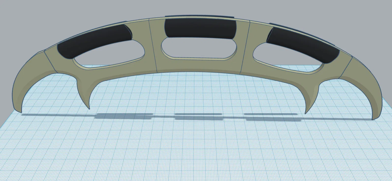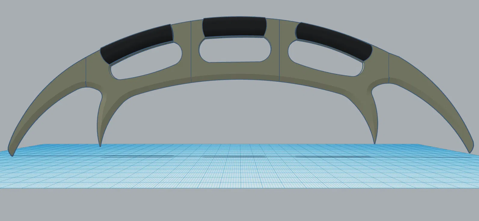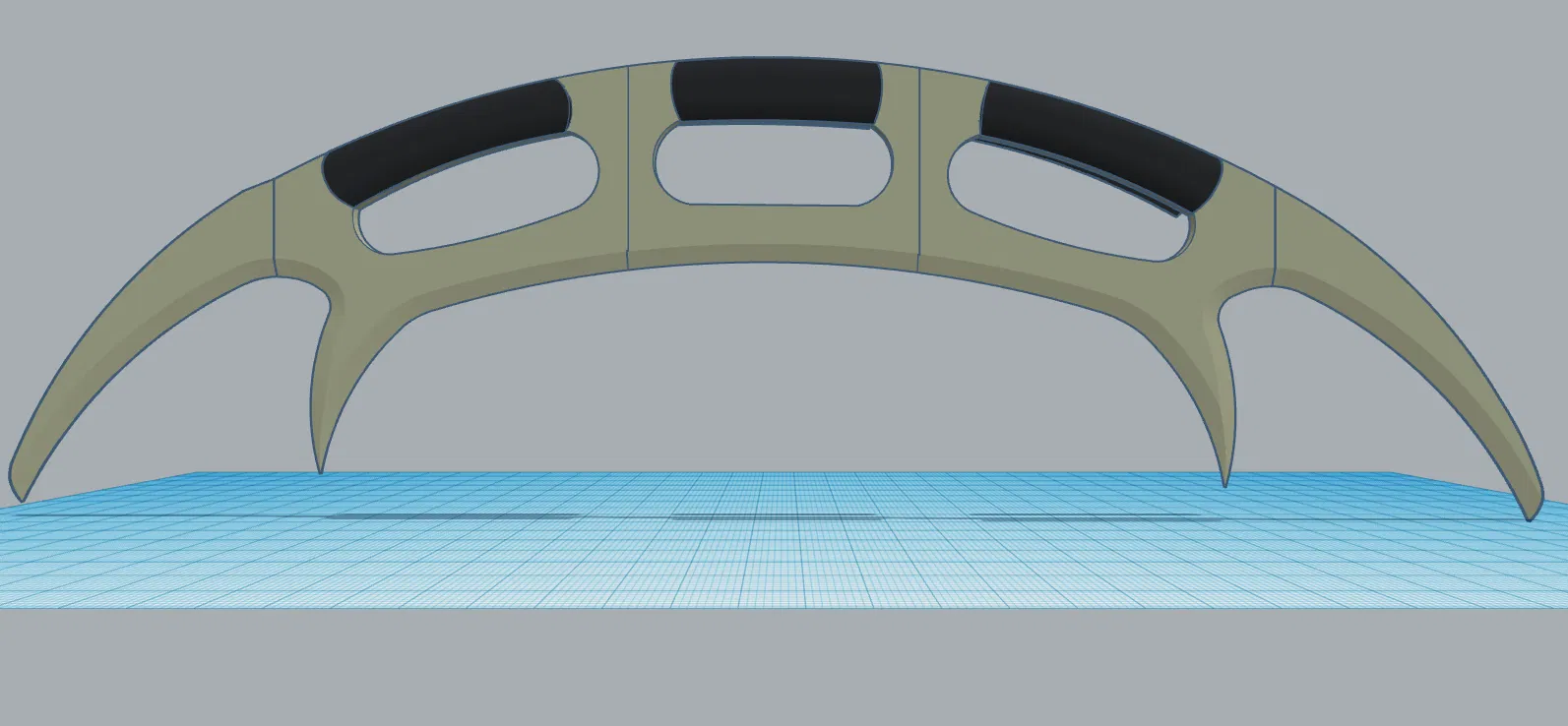 MỘT CHIẾC bat'leth là một lưỡi kiếm cong, dài khoảng 3 đến 5 feet, với hai mấu nhọn ở mỗi đầu và ba chỗ cầm dọc theo sống lưng có thể dùng để xoay và vung kiếm nhanh chóng.