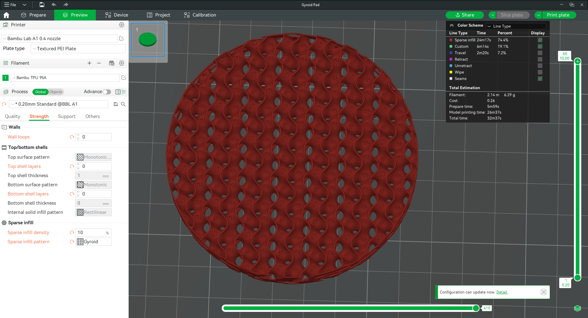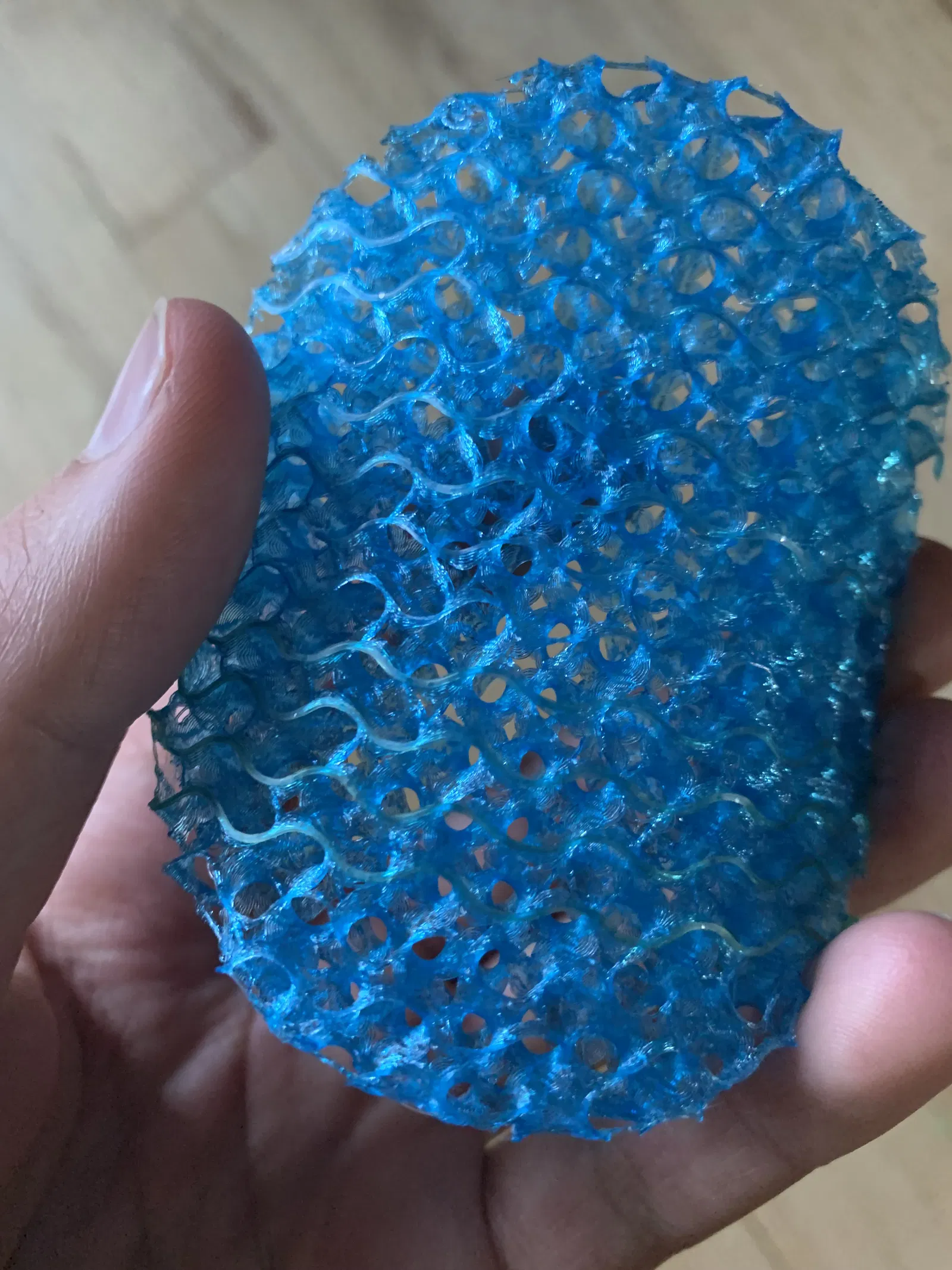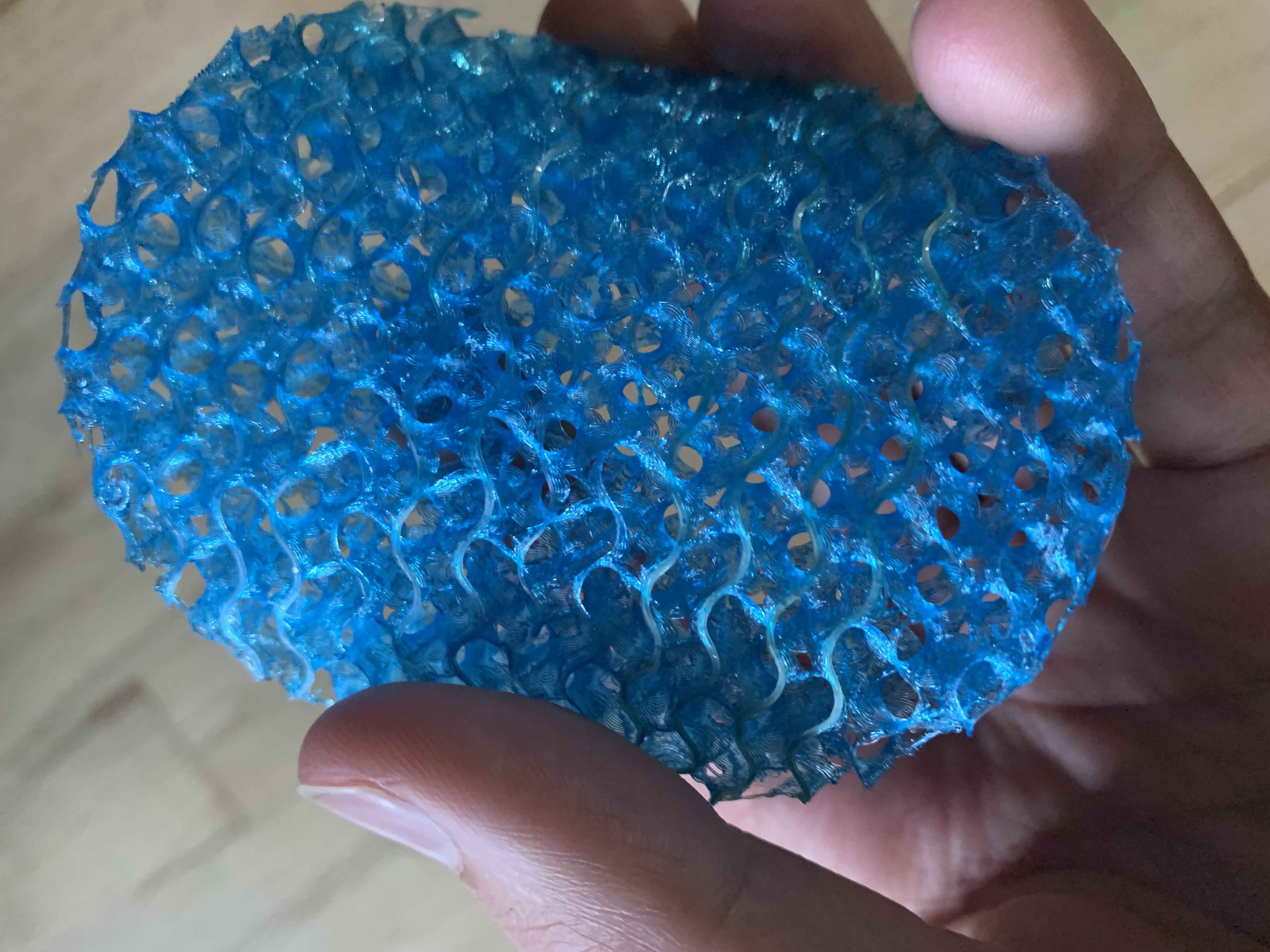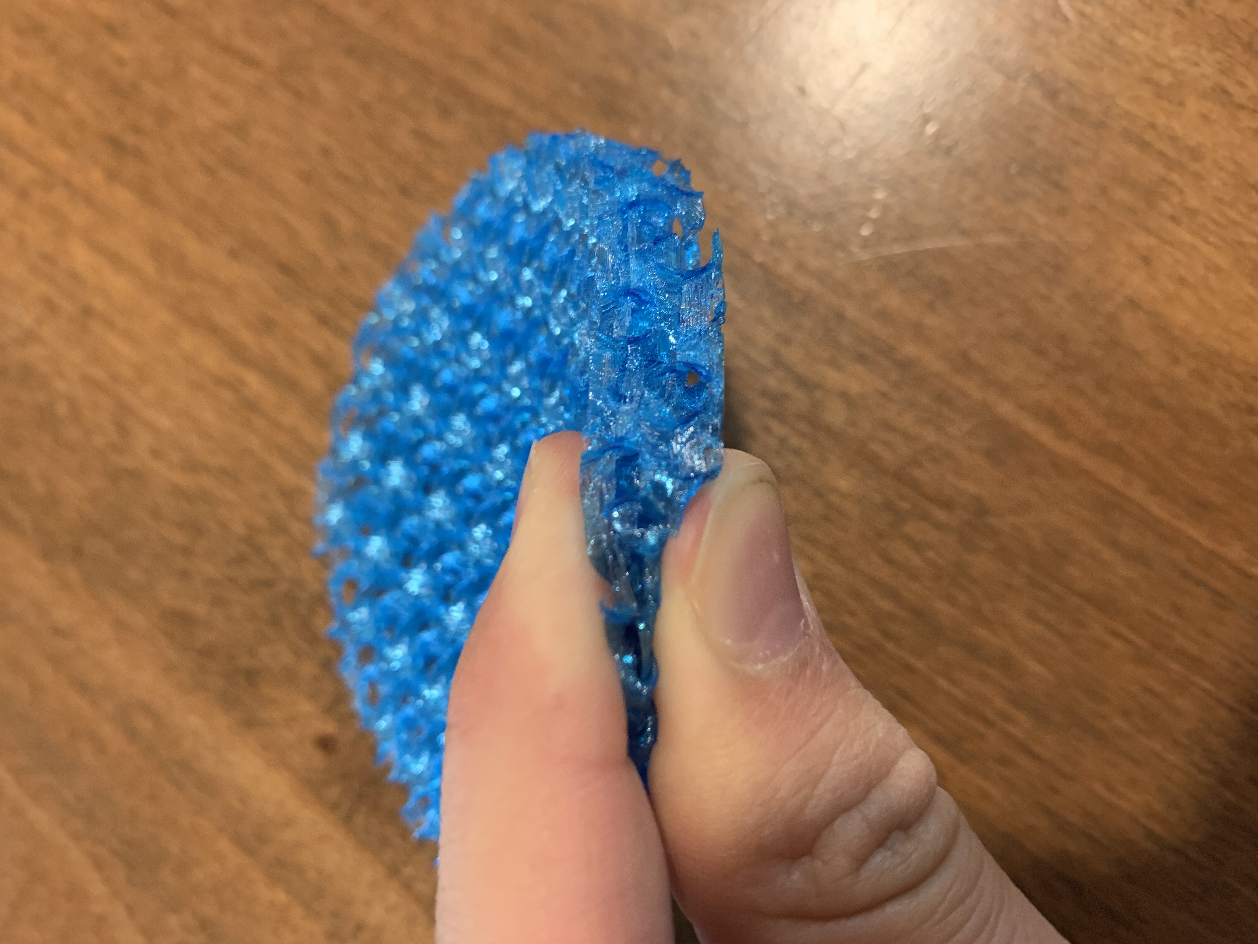 Bỏ hết tường, lớp trên và lớp dưới, chuyển mật độ lưới sang dạng Gyroid, hoặc tùy bạn thích, rồi in với TPU để có một miếng đệm siêu mềm và đã tay!