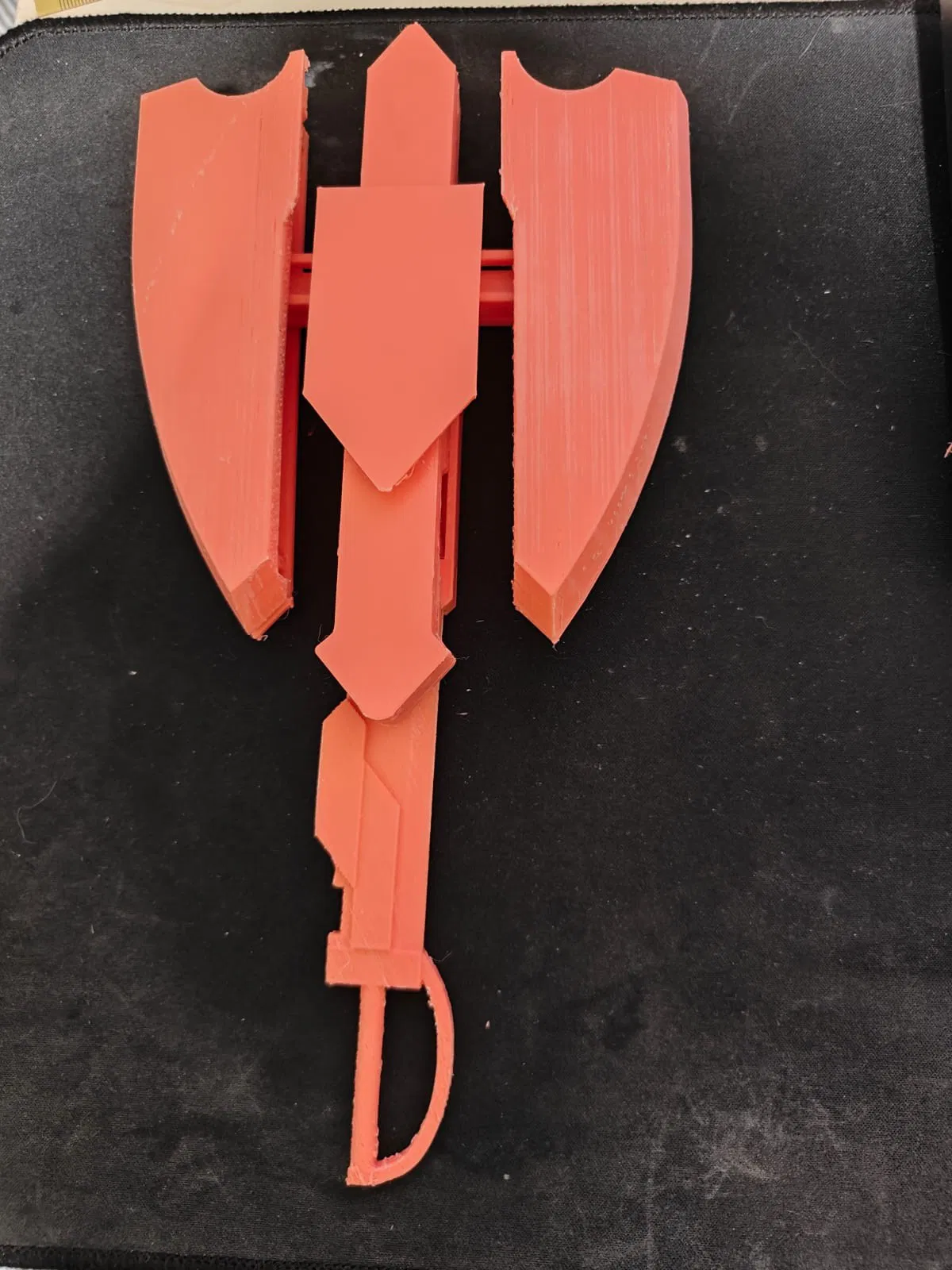 Phiên bản thứ 4 của thiết kế charge blade của tui, dựa trên dòng defender charge blade của Rise. Thanh kiếm có thể tháo rời khỏi vỏ và gắn vào mặt dưới của vỏ để biến cái khiên thành dạng rìu.