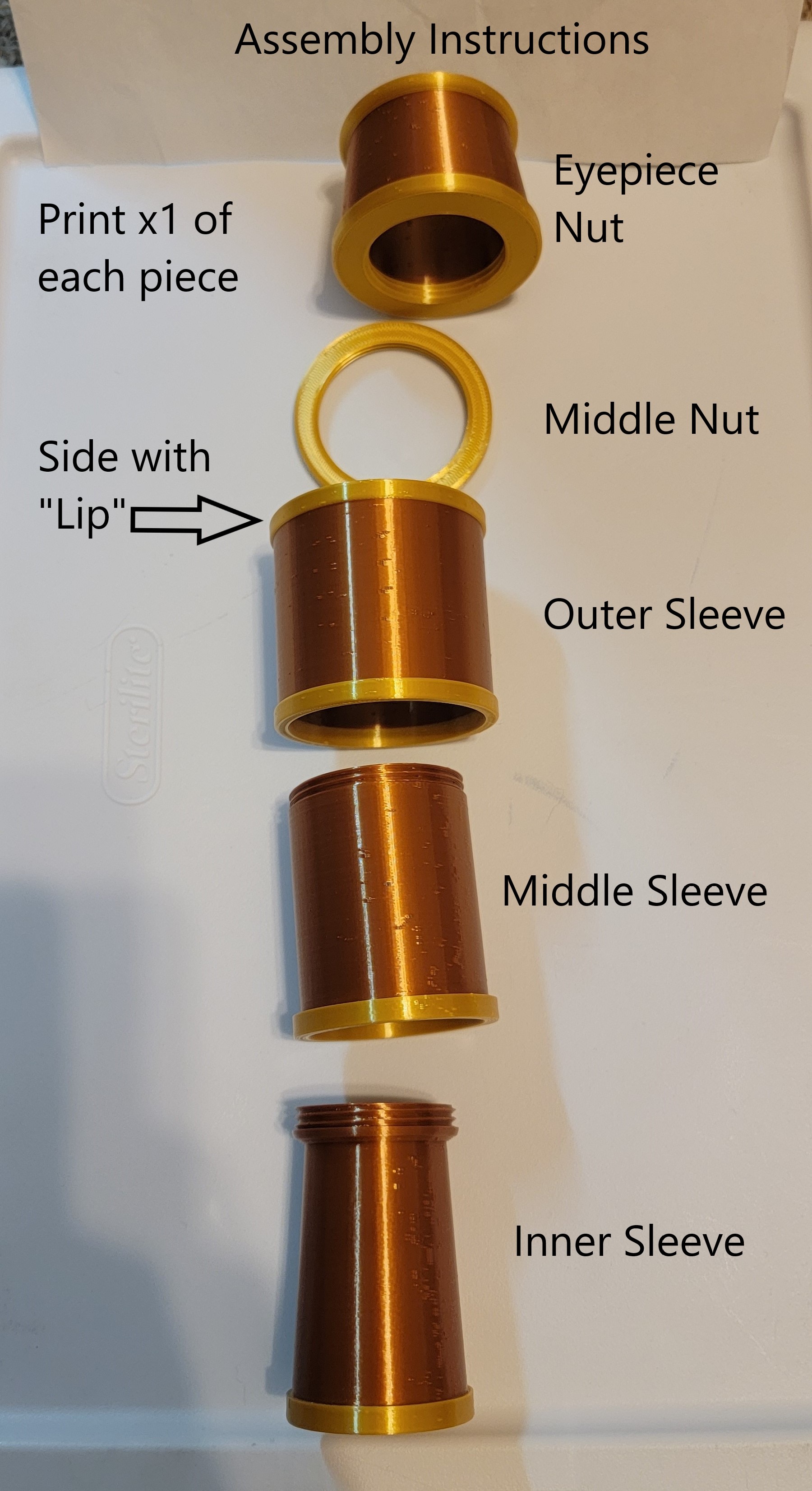 - Đai ốc thị kính. (sẽ cần đổi 2 màu)