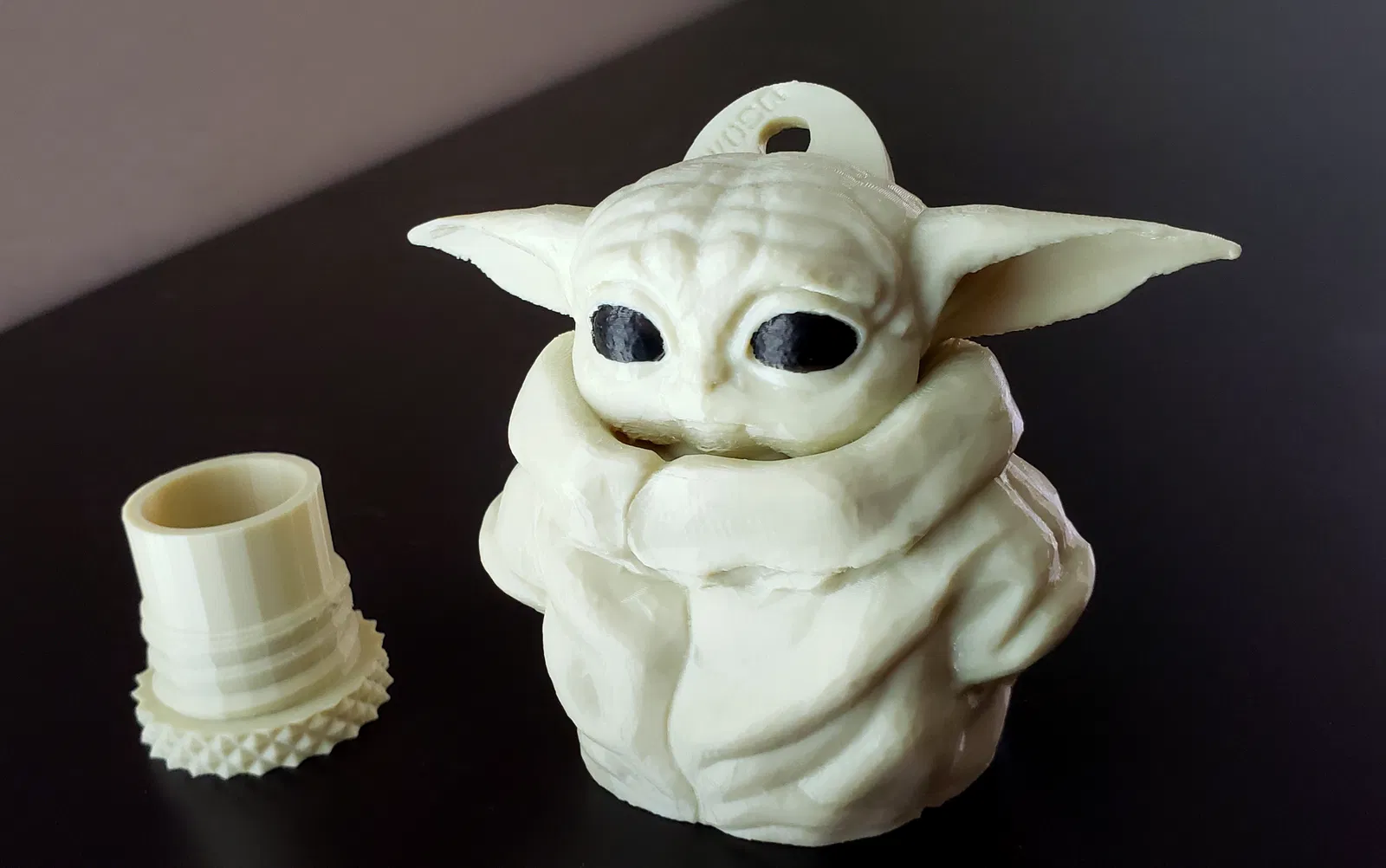Dù bạn gọi bé là Baby Yoda hay Grogu, bé đều là một chiếc hộp đựng geocache chủ đề Mandalorian xinh xắn. Giờ đây, bé có thể dùng Thần Lực để bay lơ lửng, nhờ có lỗ treo và một đoạn dây kẽm.