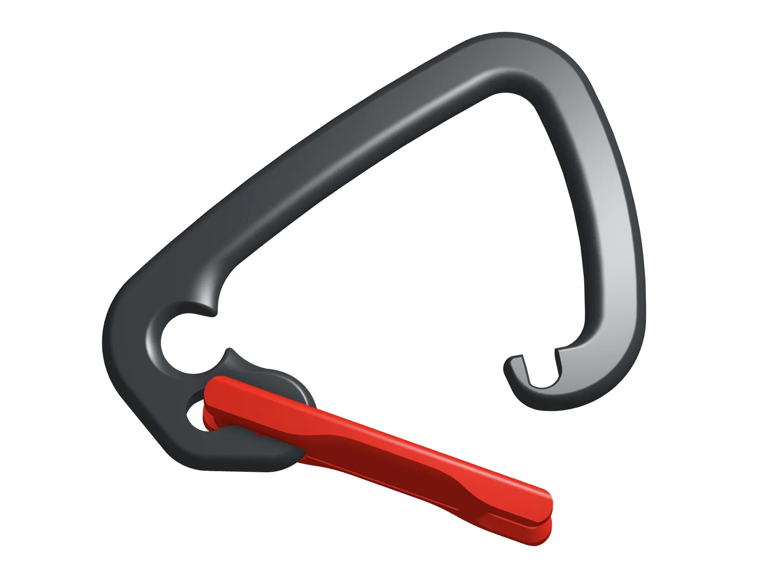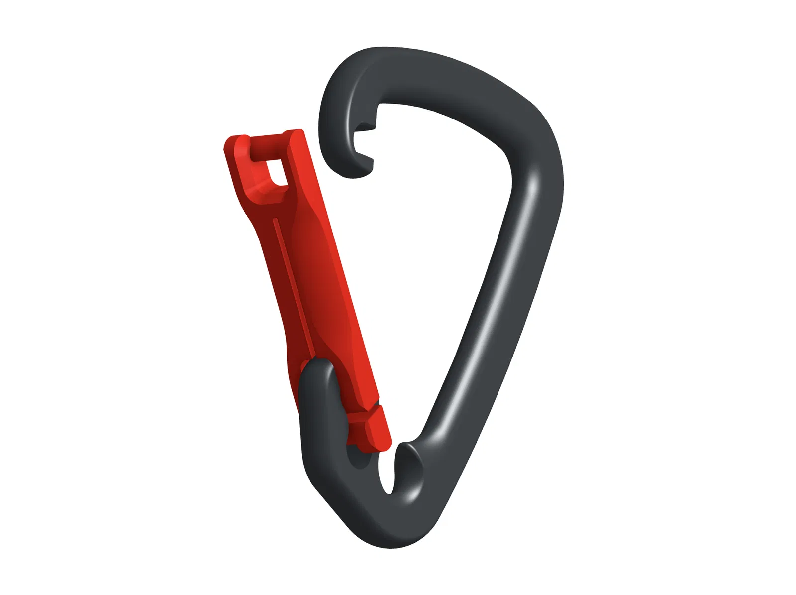 Một cái carabiner sử dụng chốt lò xo tách đôi lấy cảm hứng từ Suicide Carabiner và Origami Carabiner.