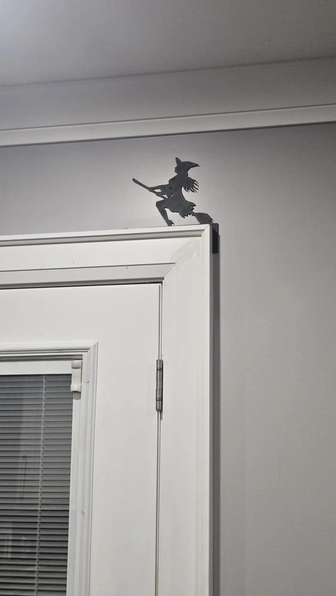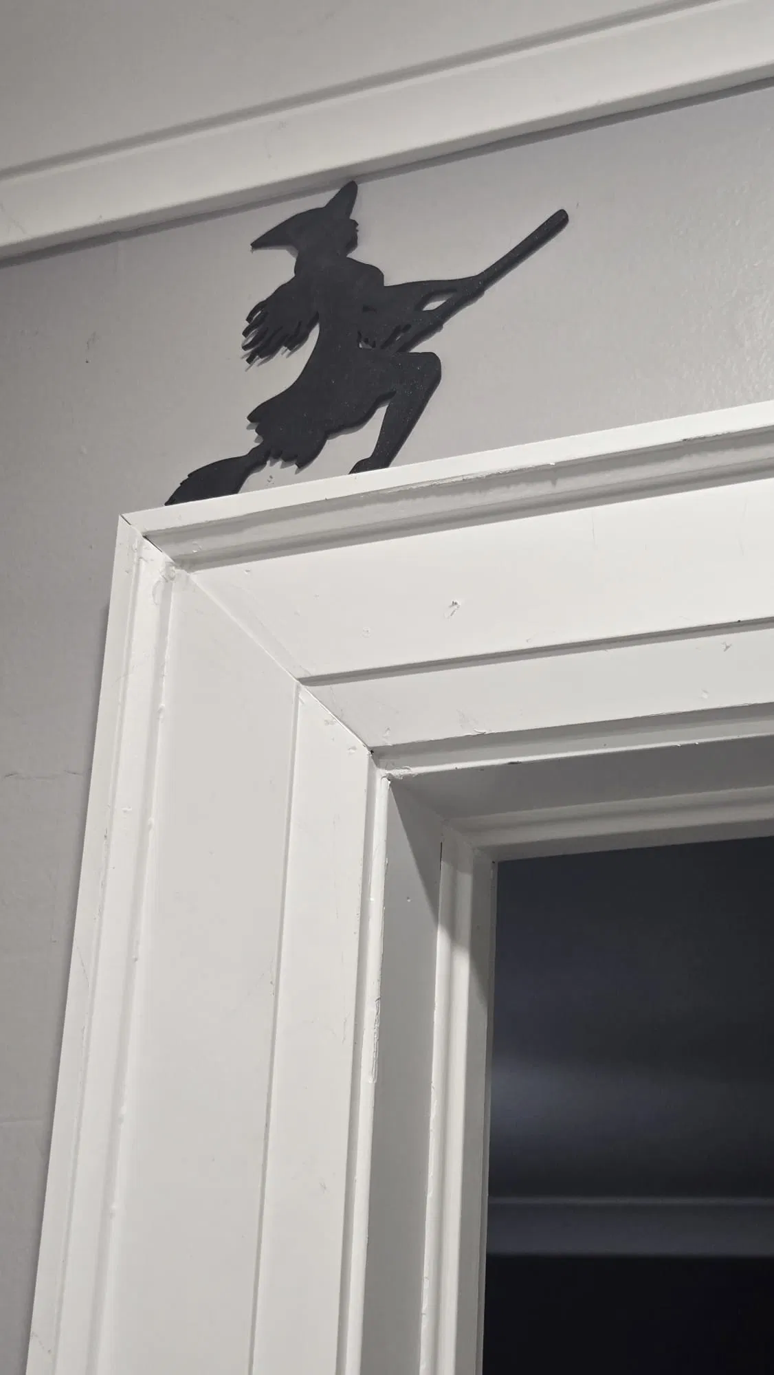 Đây là một phù thủy nhỏ xinh trên cây chổi để giúp trang trí nhà cửa của bạn! Vừa vặn hoàn hảo trên các góc cửa và nếu bạn gặp bất kỳ vấn đề gì, bạn có thể dán thêm một mẩu băng dính nhỏ để đảm bảo nó không bị rơi. Tôi chưa gặp vấn đề gì về việc rơi rớt sau khi đã đặt vào vị trí.
