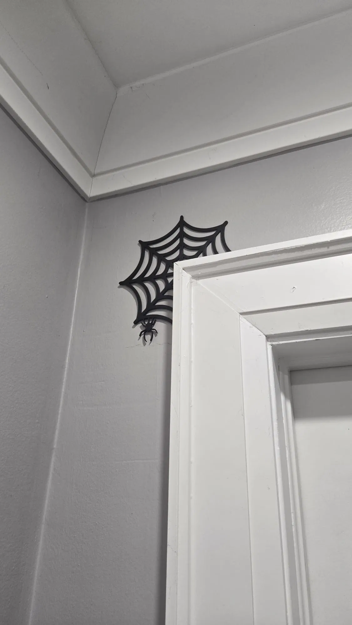 Nhện giăng tơ thiệt là ghê rợn cho cửa nhà bạn! Thậm chí còn có thêm một người bạn nhện nhỏ (tên Fred) đang ngồi chơi nữa!