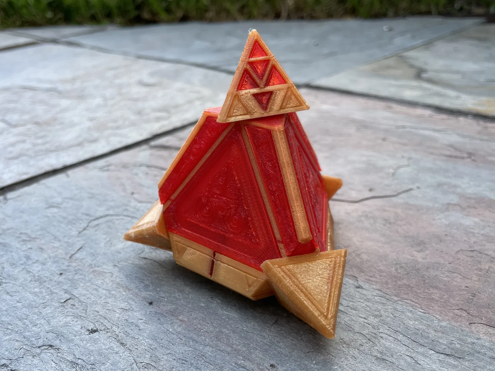 Mô hình Sith Holocron in 3D hoàn chỉnh. Các góc được liên kết cơ học với nhau để quay đồng bộ.
