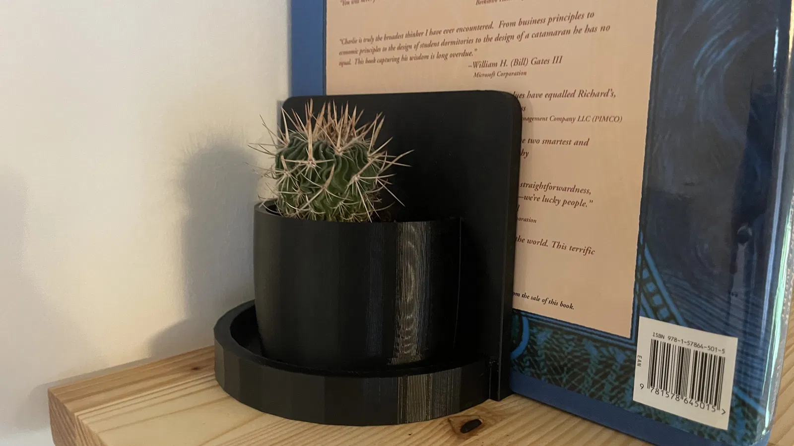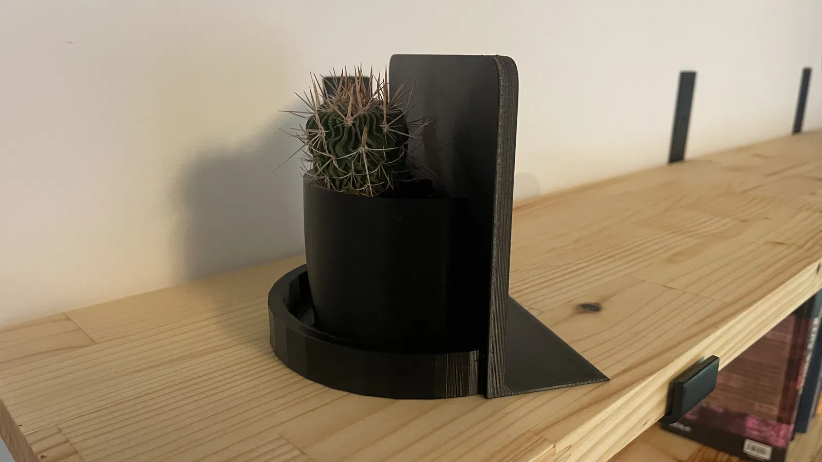 Làm lại phiên bản gốc của "Plant Pot Book End" bằng cách thêm một cái đòn bẩy phía dưới sách để giữ cho kệ sách vững hơn.