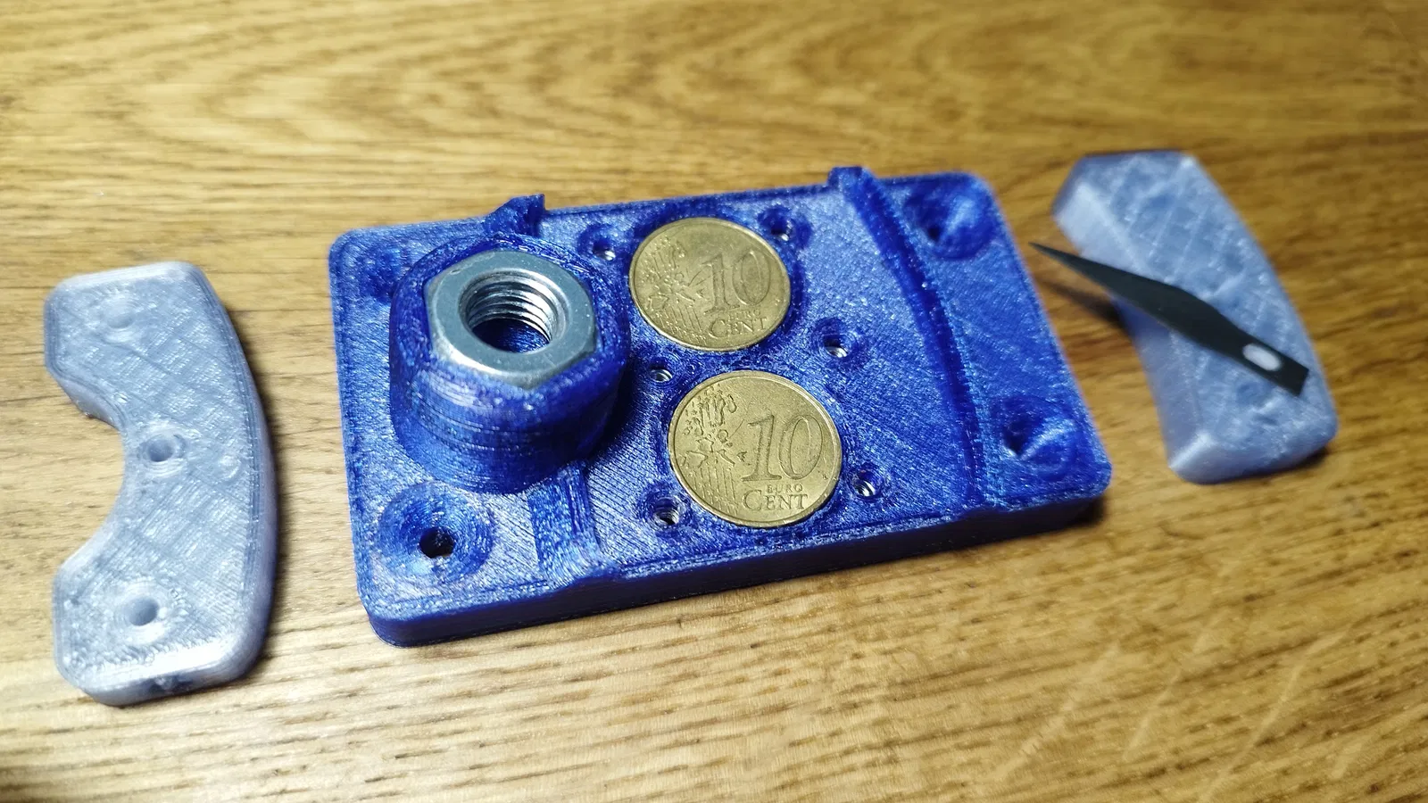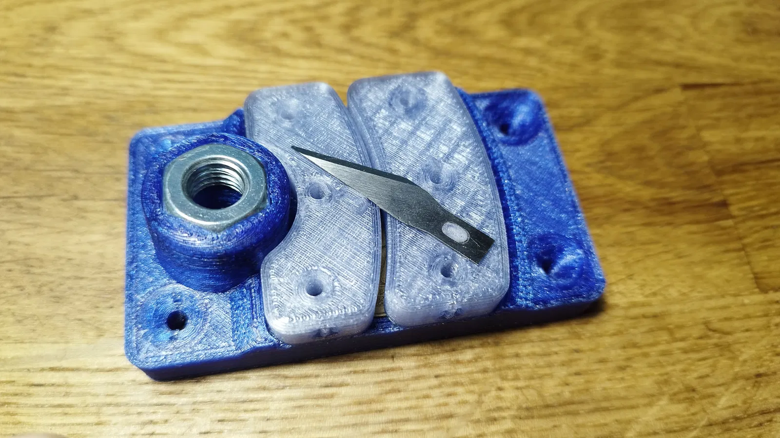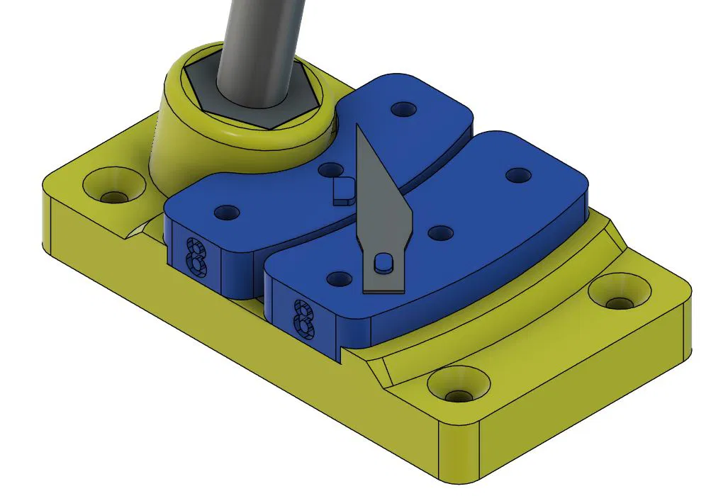 Dụng cụ cắt chai này giúp anh em tạo sợi filament PET1 từ chai nhựa cũ. Sử dụng lưỡi dao rọc giấy, bạn có thể dễ dàng cắt chai thành dải nhựa để tái chế.
