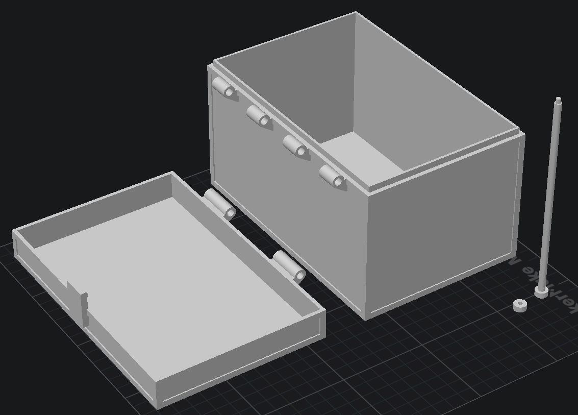 • Ghi chú: Do có gờ trên nắp, tốt nhất nên bật hỗ trợ khi in phần trên. Nó không cần thiết cho máy in của tôi nhưng tôi đã có một số bị sụp xuống và các đường không đều. Tô màu không đơn giản để tạo lớp, nhưng rất dễ in màu nâu và tô điểm bằng bút tô màu bạc và nâu sẫm. Nắp thanh không cần thiết nếu vừa khít, nhưng là tùy chọn cho độ bền tối đa.