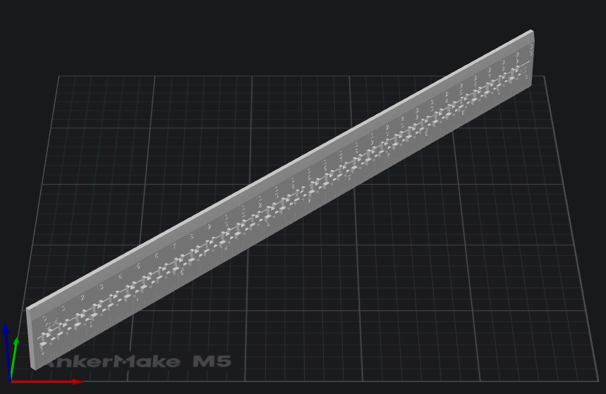 • Ghi chú: Thước kẻ dài 12 inch này nằm hoàn hảo trên khay in của AnkerMake M5 nếu bạn đặt nó ở cạnh nghiêng 45°. Các rãnh cực kỳ đơn giản để lấp đầy bằng bút tô màu và nhanh chóng lau đi. Tôi cũng đã bao gồm một phiên bản ngắn hơn và hẹp hơn 10 inch chỉ có nửa inch. Đảm bảo bạn có độ bám bàn in tốt để đầu thước không bị nhấc lên khi in!