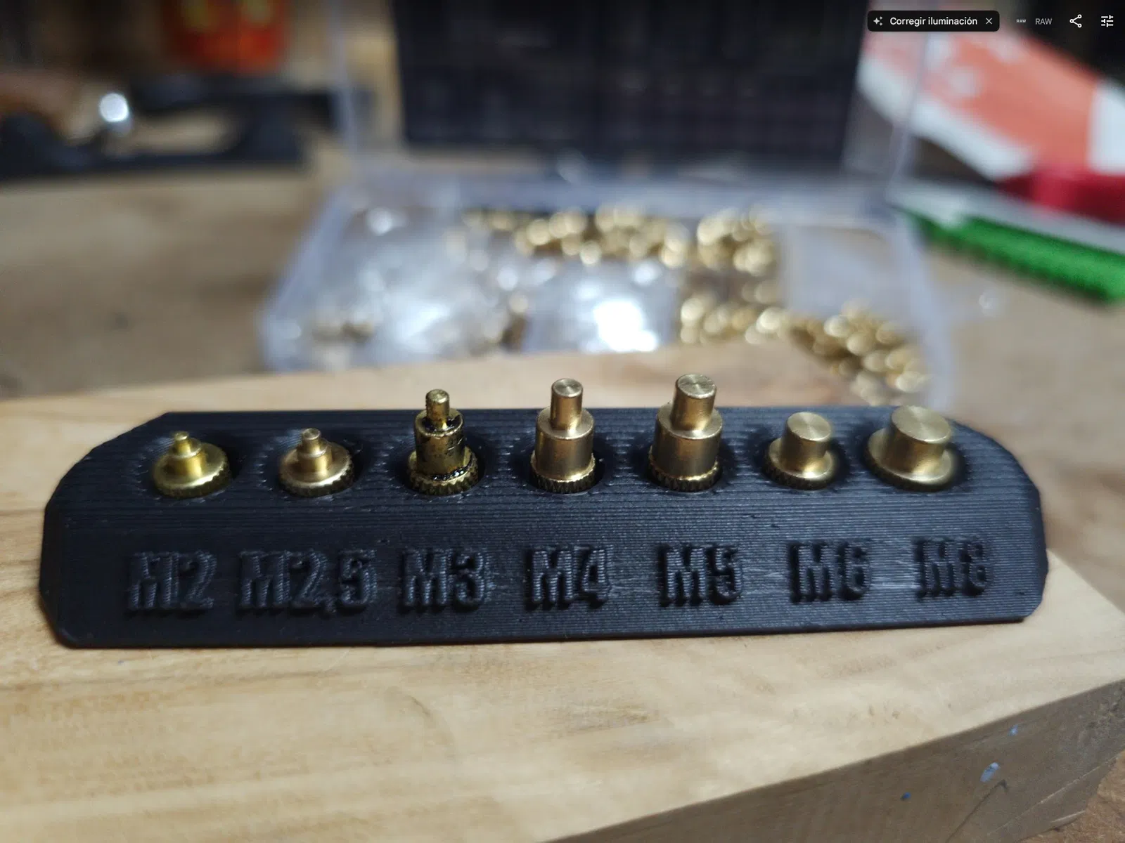 Nó được làm cho mấy cái insert mua trên Amazon, đường kính 7mm. Đường kính lỗ trong mẫu này là 8.5mm (10mm cho M8) và sâu 8mm.