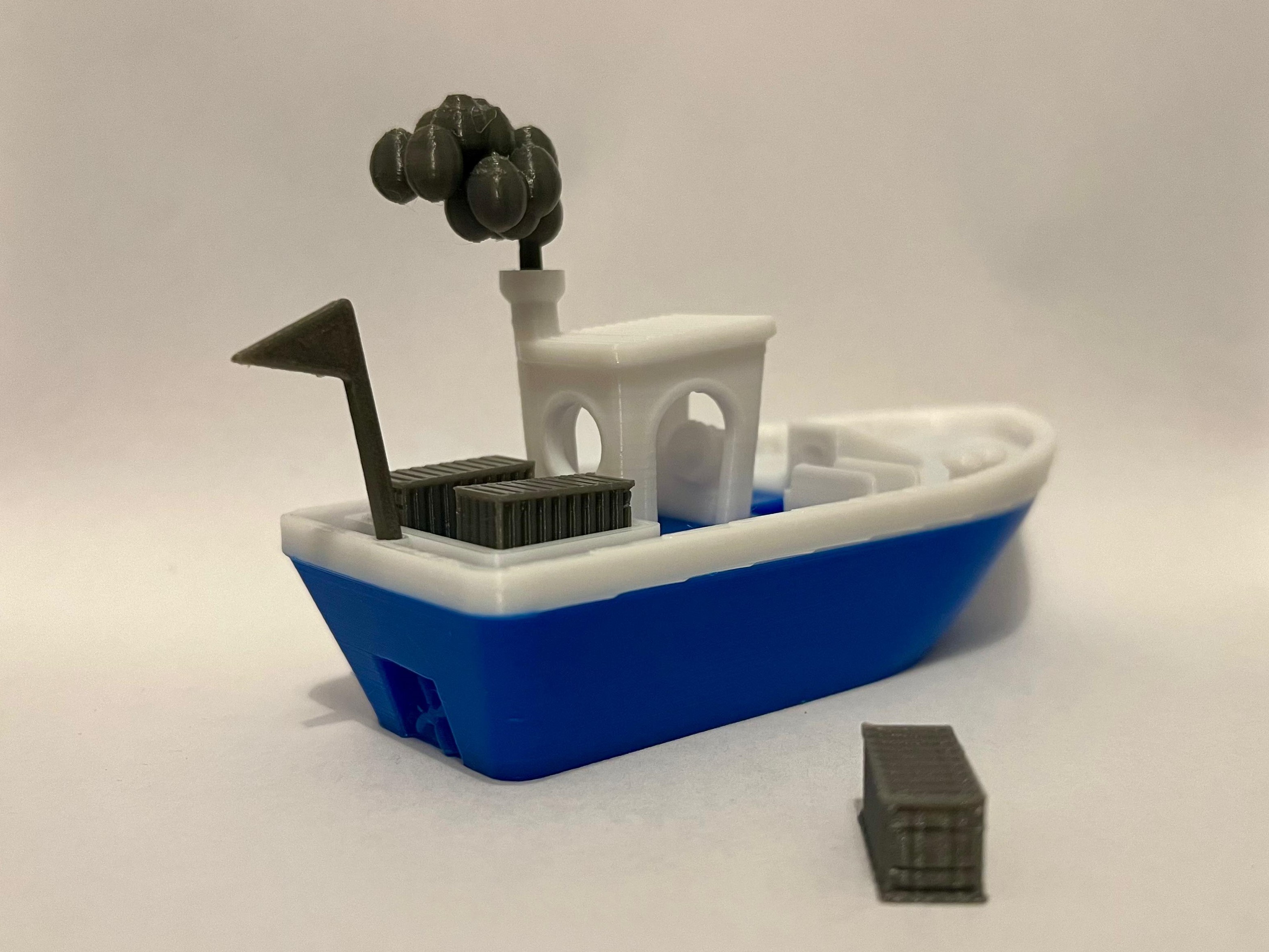 Chiếc Benchy nổi siêu ổn định, có thêm thùng hàng, khói và cờ, phiên bản đa sắc màu! In cho bé chơi trong bồn tắm, giữ nước cực tốt. Có sẵn bản AMS/MMU cho máy in đa màu.