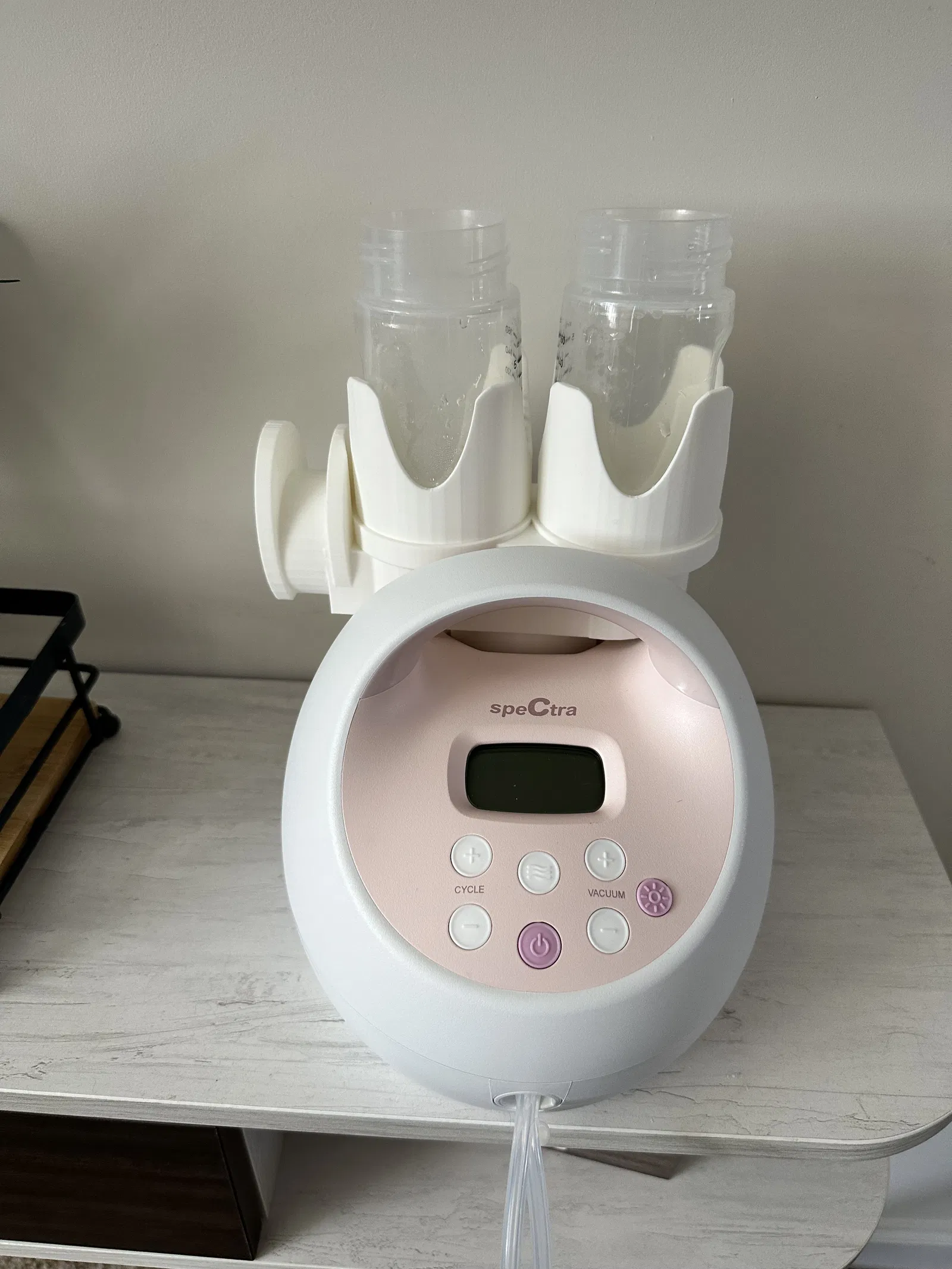 Xin gửi lời cảm ơn chân thành đến @Thrasymack_136015 đã truyền cảm hứng cho mẫu này. Cái này dùng để sắp xếp đồ đạc, gắn vào phía sau máy hút sữa Spectra để giữ hai bình sữa và ống hút. Tui đã cập nhật mẫu này để phù hợp với kiểu bình sữa bầu dục mới hơn, còn mẫu cũ thì hơi tròn vo. Xem mẫu gốc để tham khảo hình ảnh nha.