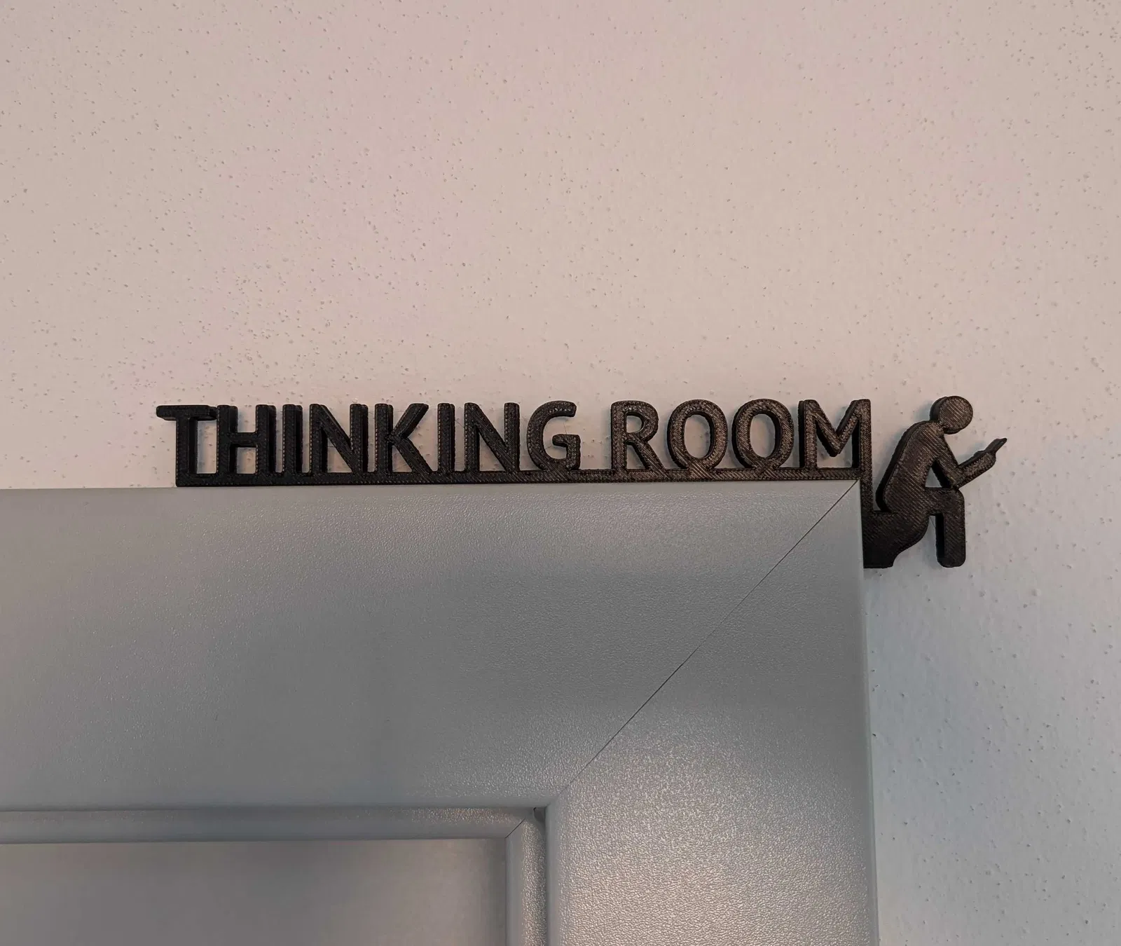 Biển báo này dành cho phòng vệ sinh hoặc phòng suy tư, được thiết kế để dễ dàng in 3D. Nó mang thông điệp vui nhộn và độc đáo cho không gian cá nhân của bạn.