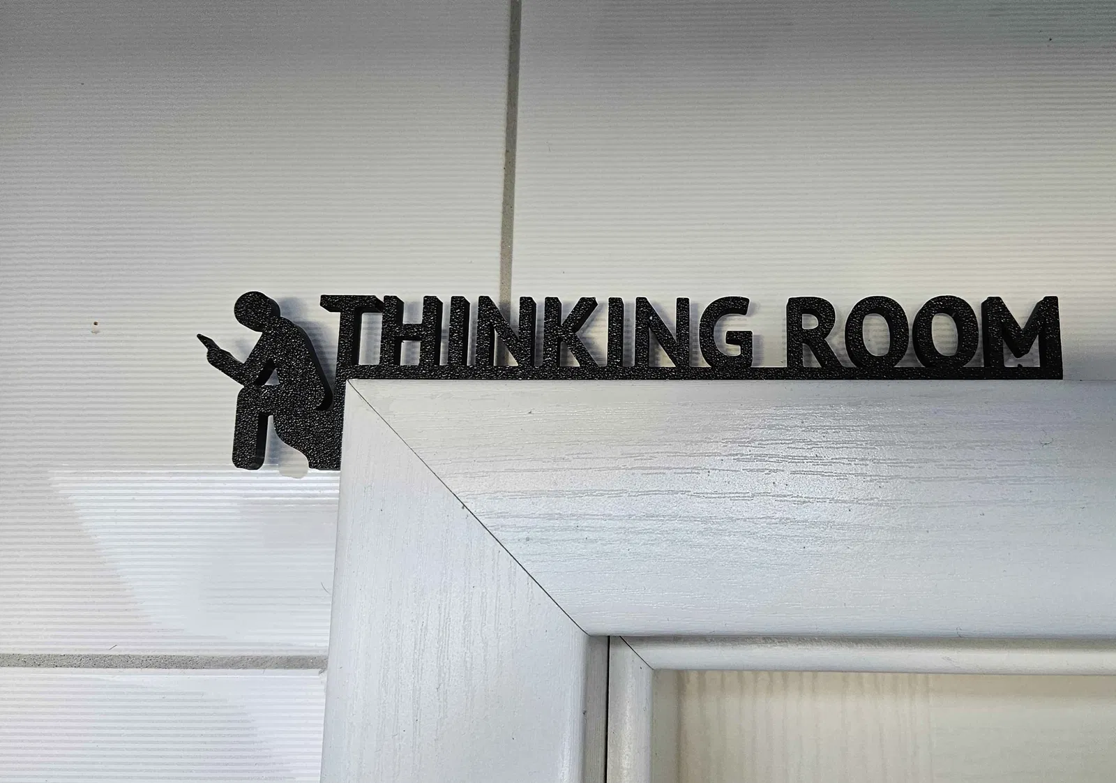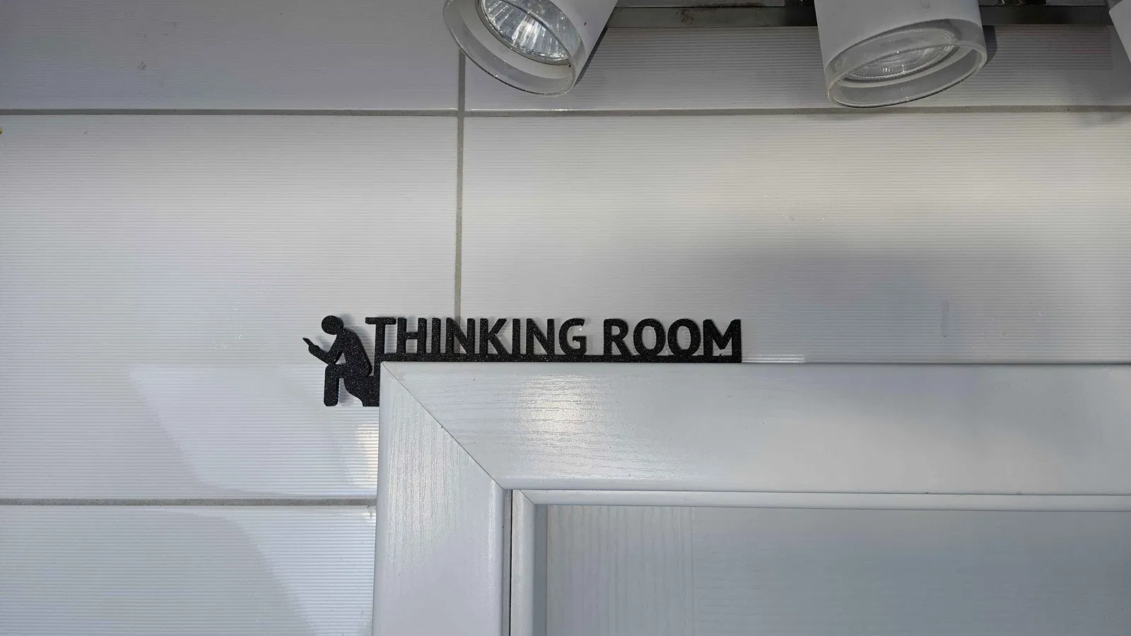 Biển hiệu "phòng suy tư" phiên bản làm lại, có hình người đang ngồi trên ngai vàng, thích hợp đặt ở nhà vệ sinh, phòng tắm hoặc WC. Thiết kế này mang đến một chút hài hước và độc đáo cho không gian riêng tư của bạn.