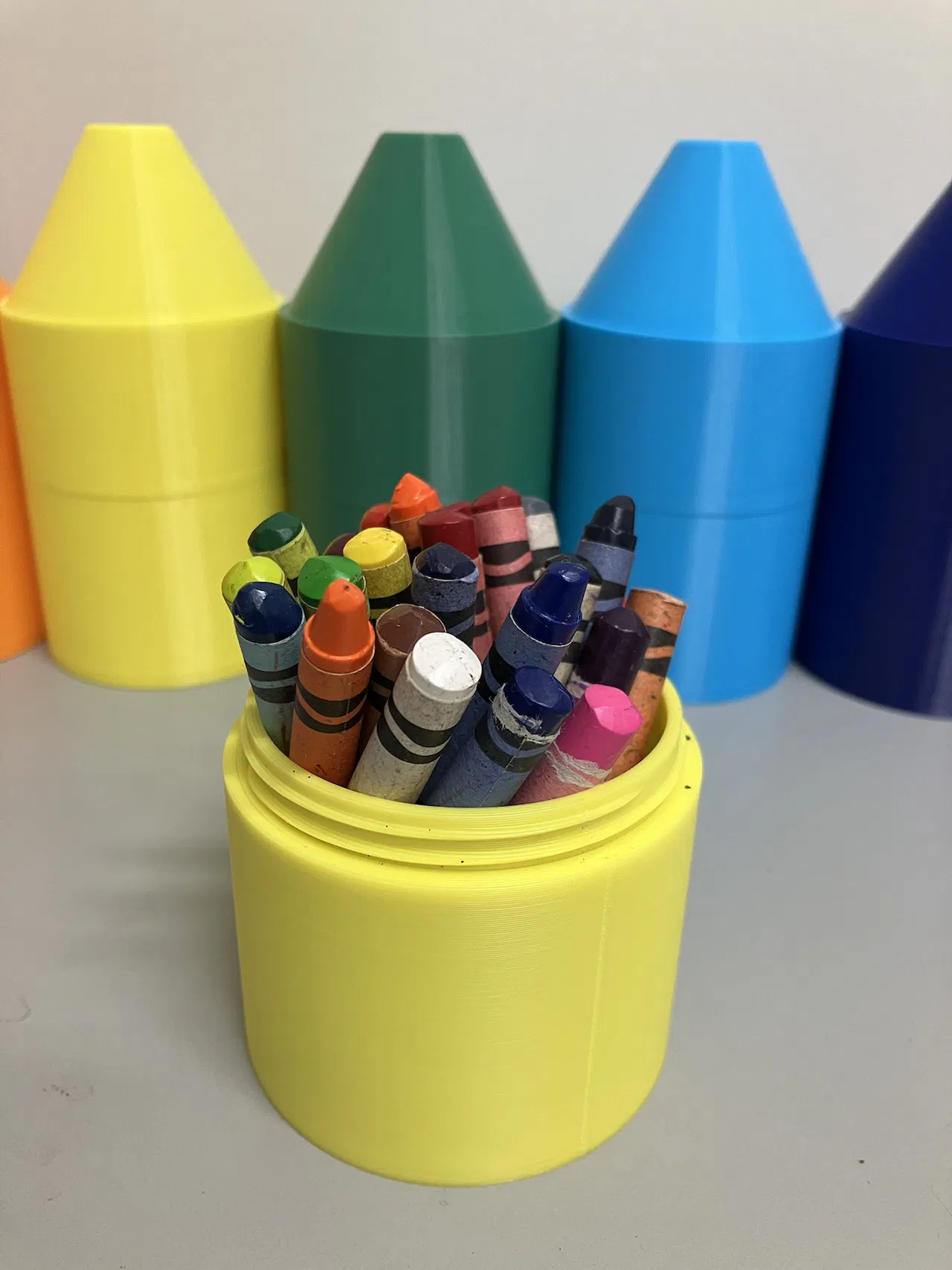 Mình là giáo viên và mình thiết kế cái hộp đựng bút sáp này vì các học sinh của mình cần một cách để sắp xếp bút sáp. Mình muốn tạo ra một cái gì đó vui vẻ để các bé thích thú. Cái hộp này được thiết kế để đựng được tới 24 cây bút sáp!