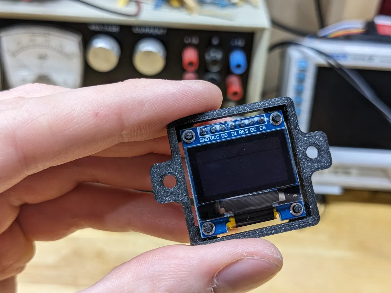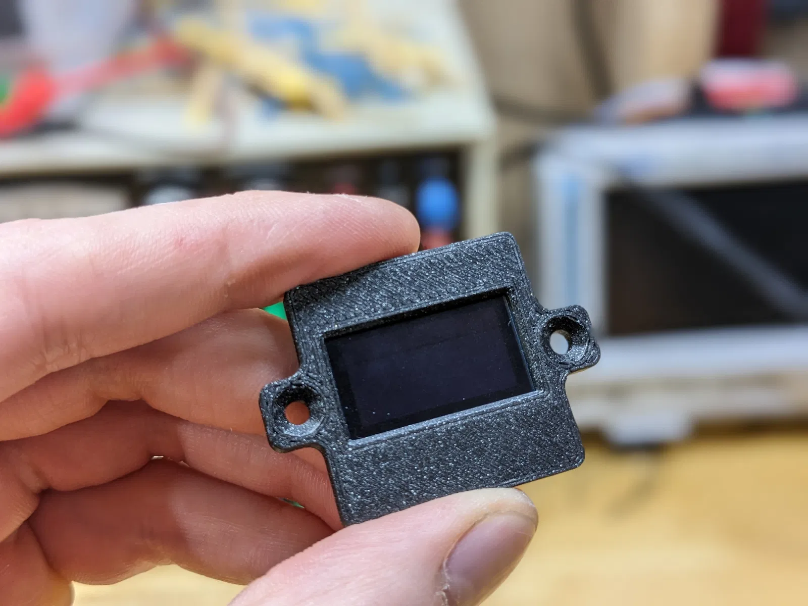Tao muốn có một cách để gắn chắc chắn và đơn giản cái màn hình OLED SSD1306 với kích thước tiêu chuẩn vào cái hộp đựng đồ DIY của tao, và cái này đáp ứng được nhu cầu đó. Giữ cho màn hình OLED vuông vắn, sát mép và không bị rung lắc.