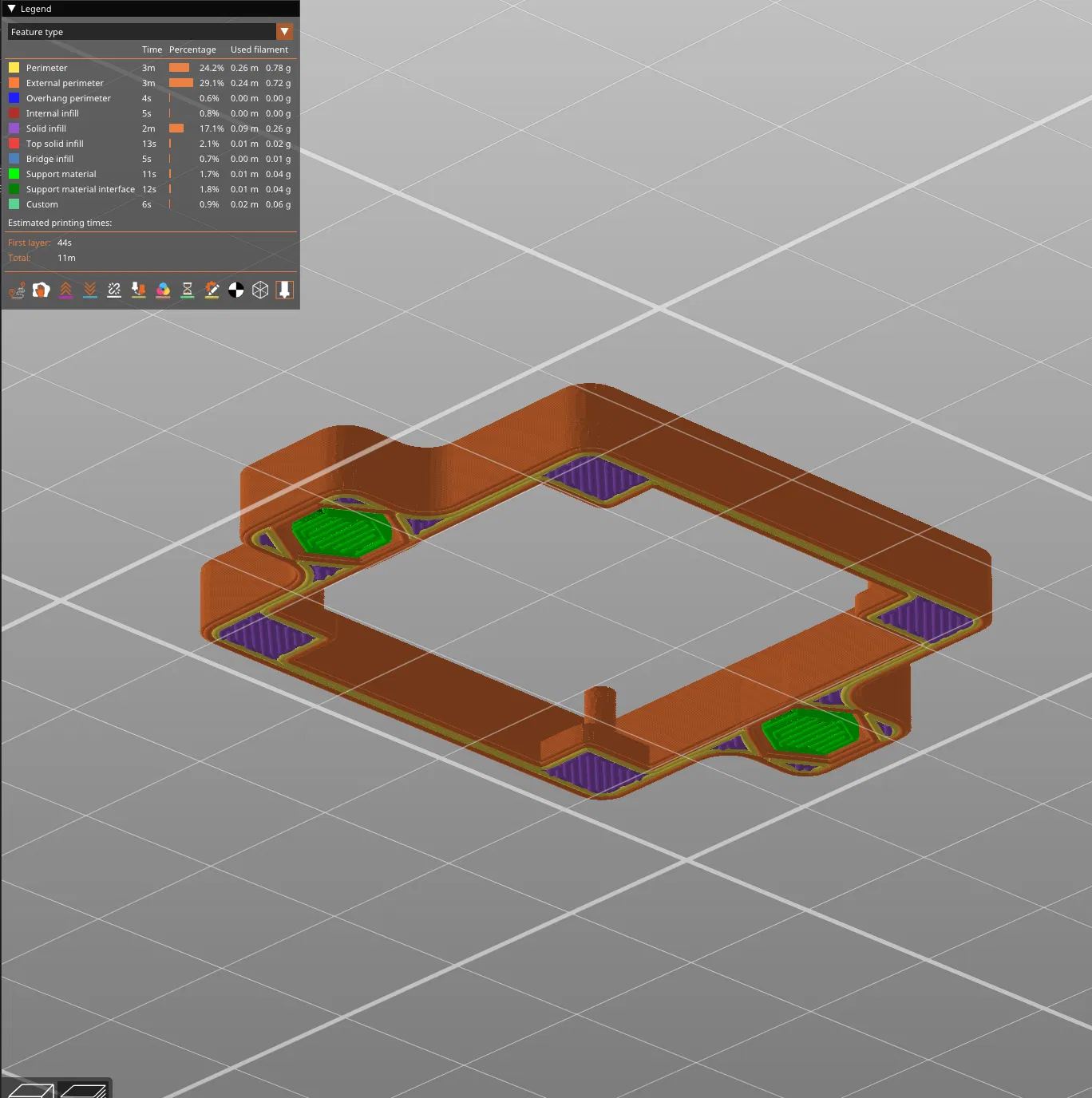 - Chiều cao lớp in 0.20mm với đầu phun 0.40mm là đủ tốt cho các trụ đỡ.
