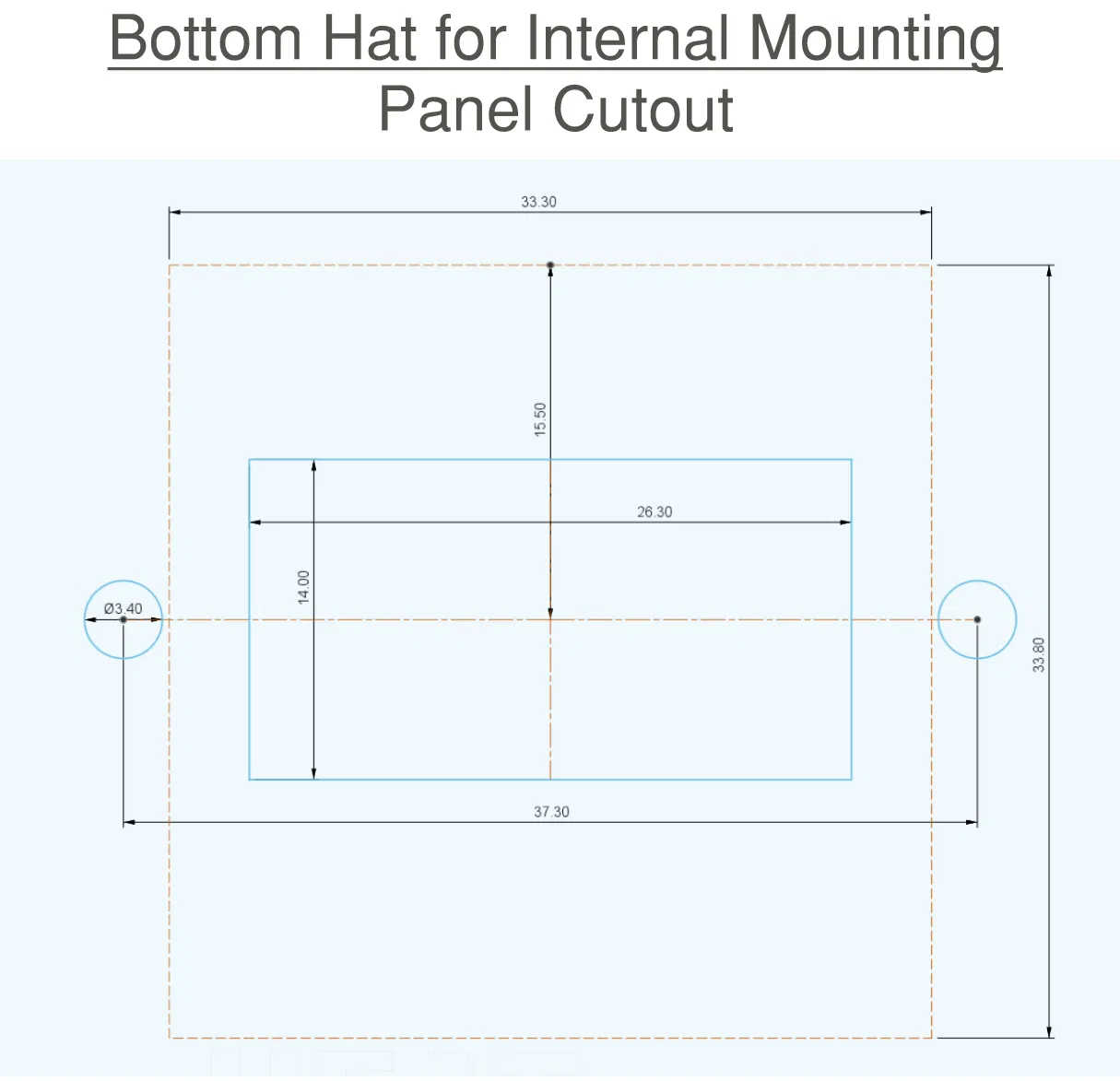Tham khảo hình ảnh để biết lỗ cắt panel cần thiết cho mỗi loại. Các lỗ khoan, túi đai ốc và lỗ doa thiết kế để vít chìm M3 nằm phẳng.