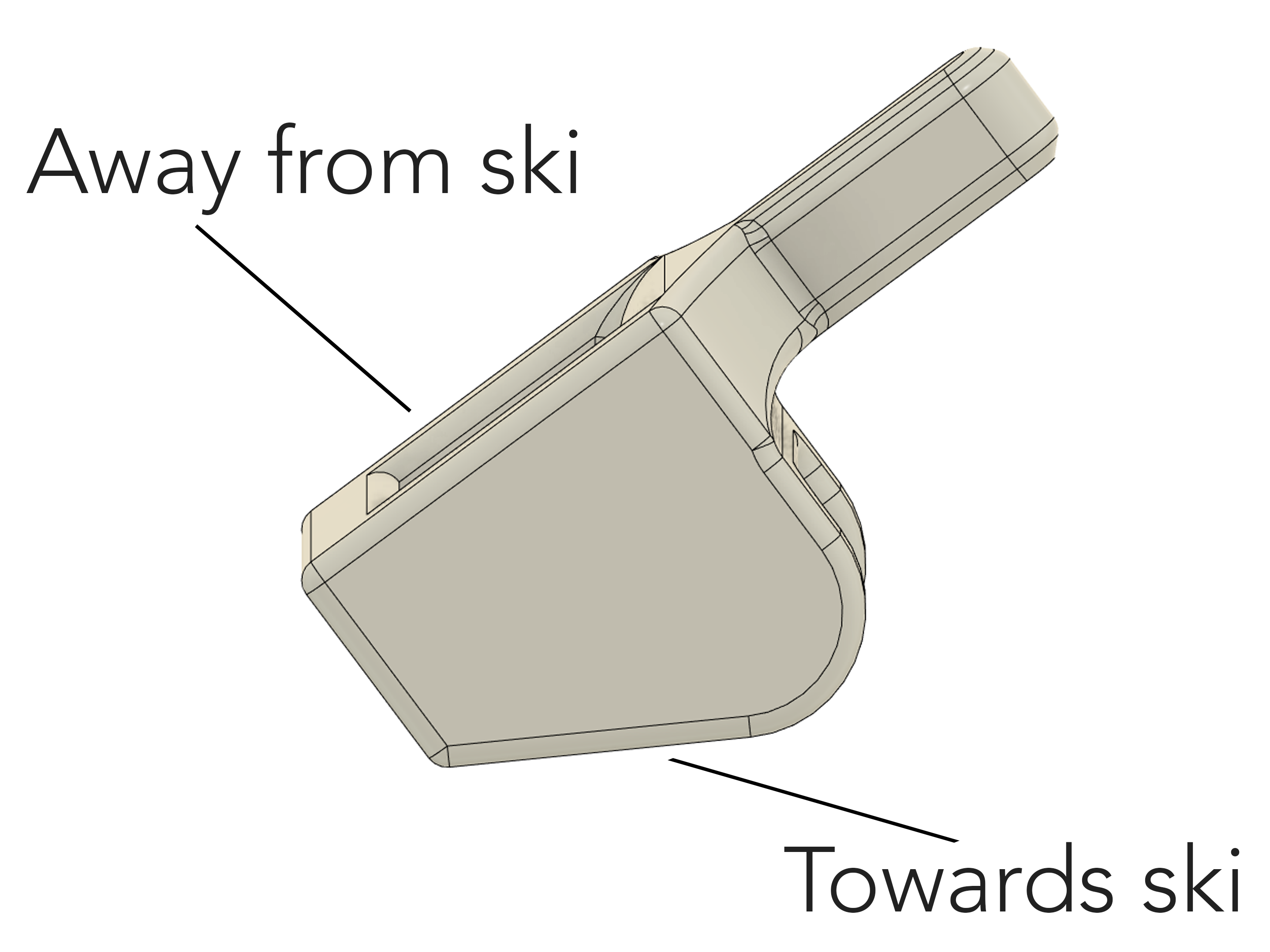 CÁCH SỬ DỤNG Với các cạnh có góc nâng của khóa hướng vào trong, luồn phần đuôi của dây đeo qua khóa. Những chi tiết này giúp giữ khóa không chạm vào mặt ván trượt (tương tự như cách khóa kim loại của dây trượt tuyết thông thường bị uốn cong lên). Kéo mạnh vào đầu dây đeo cho đến khi vừa khít.