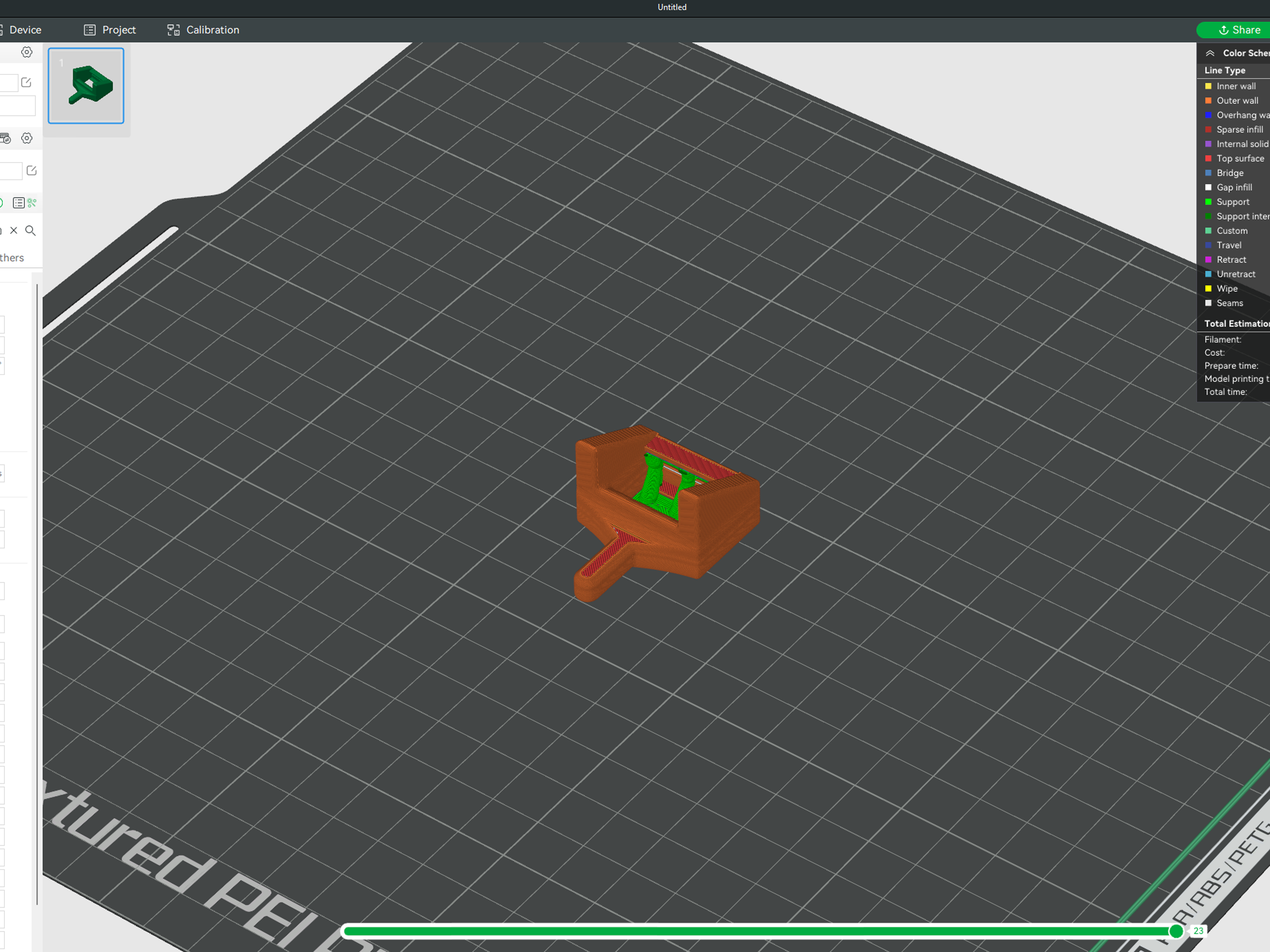 - Dây đeo cố tình in nghiêng để có thể làm dây đeo dài hơn. Điều này hoàn toàn ổn với TPU vì nó bám dính rất tốt với pei có vân.