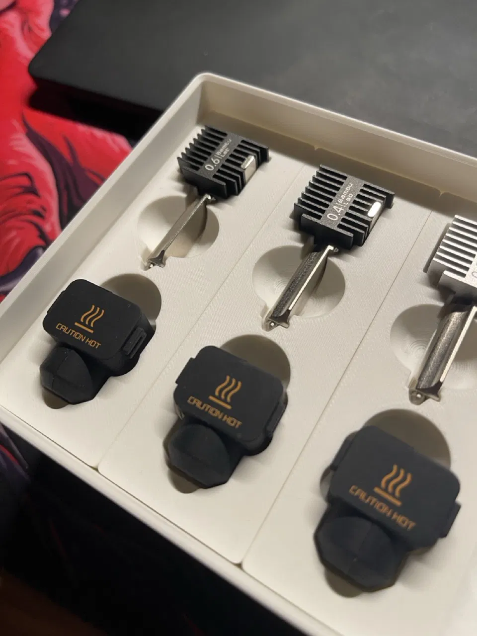 Giá đỡ Hotend cho Bambu Lab A1/A1 mini, có thể chứa tối đa 4 bộ hotend trong một hộp đựng đồ nghề. Bạn có thể in nhiều lần để chứa đủ số lượng cần thiết.