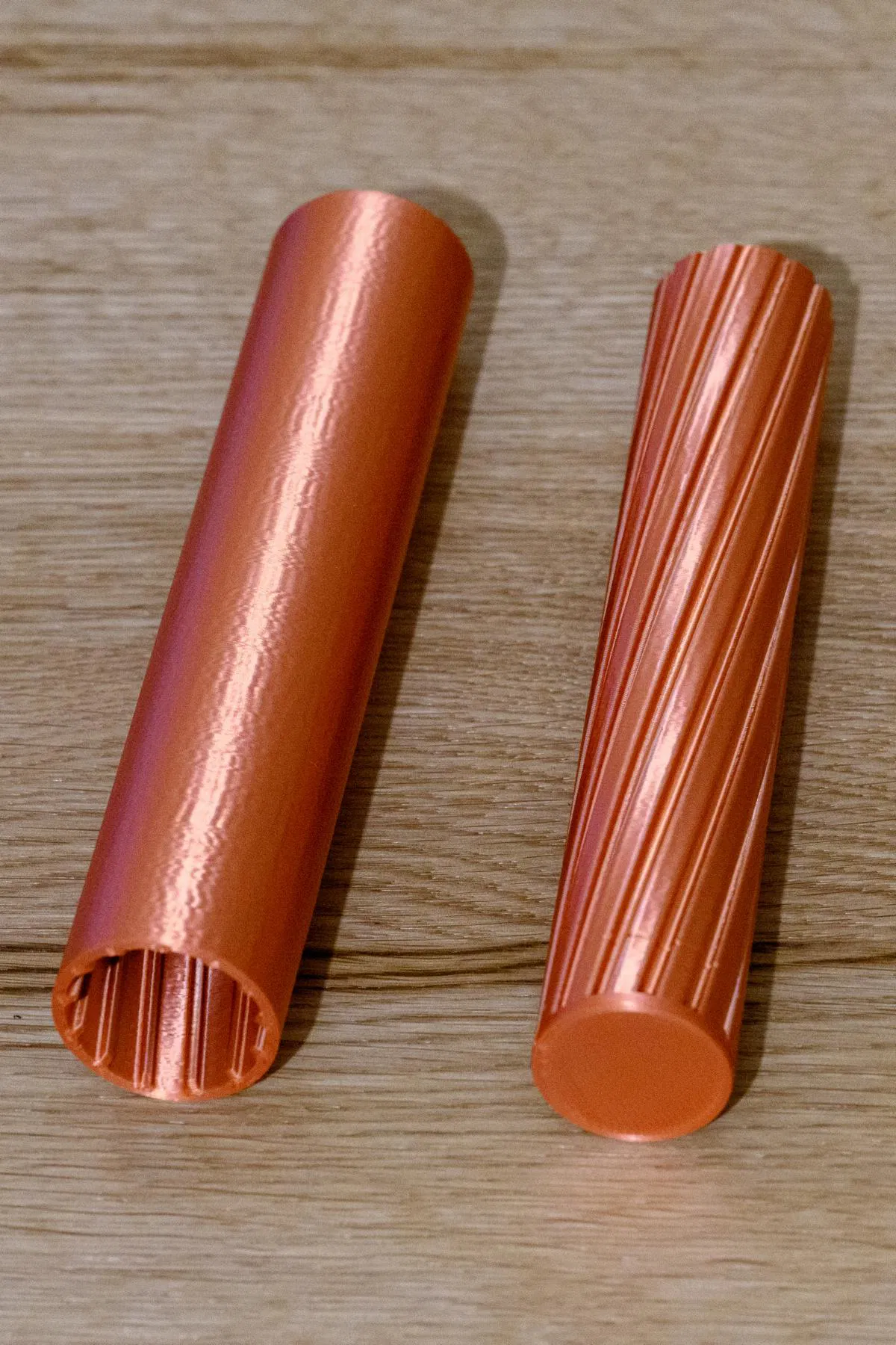 Damit bei ungenaueren Druckern ein reibungsloses Gleiten gewährleistet ist, hat die Version 2.0 (FüllerEtuiAussen2.0.stl) einen Versatz zwischen Innen- und Außenkörper von 0,20 mm.