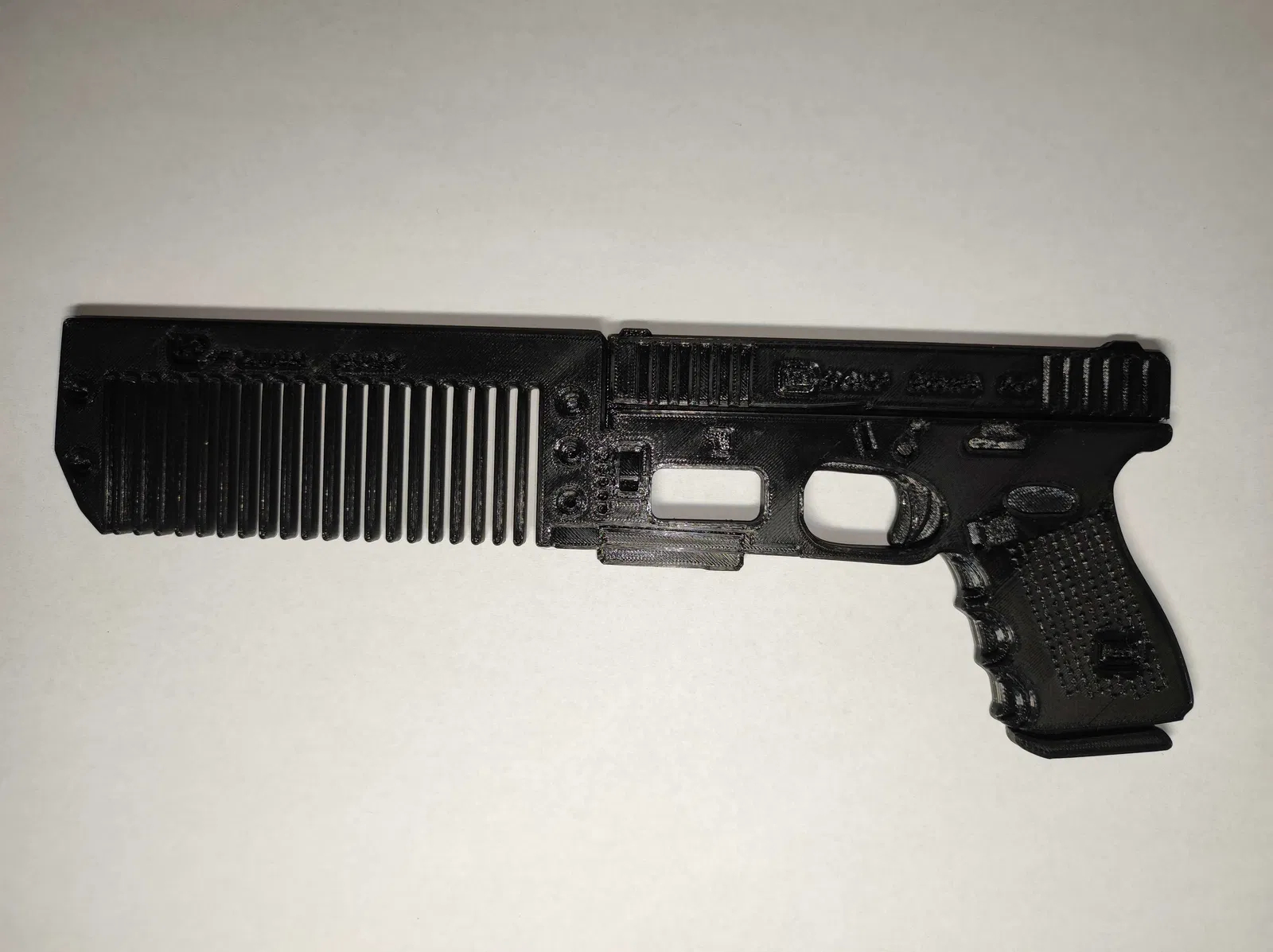 Tui có làm và in cái lược này, cực kỳ đơn giản, với hình dáng giống dòng súng Glock nổi tiếng. Nó in dễ dàng mà không cần bất kỳ support nào.