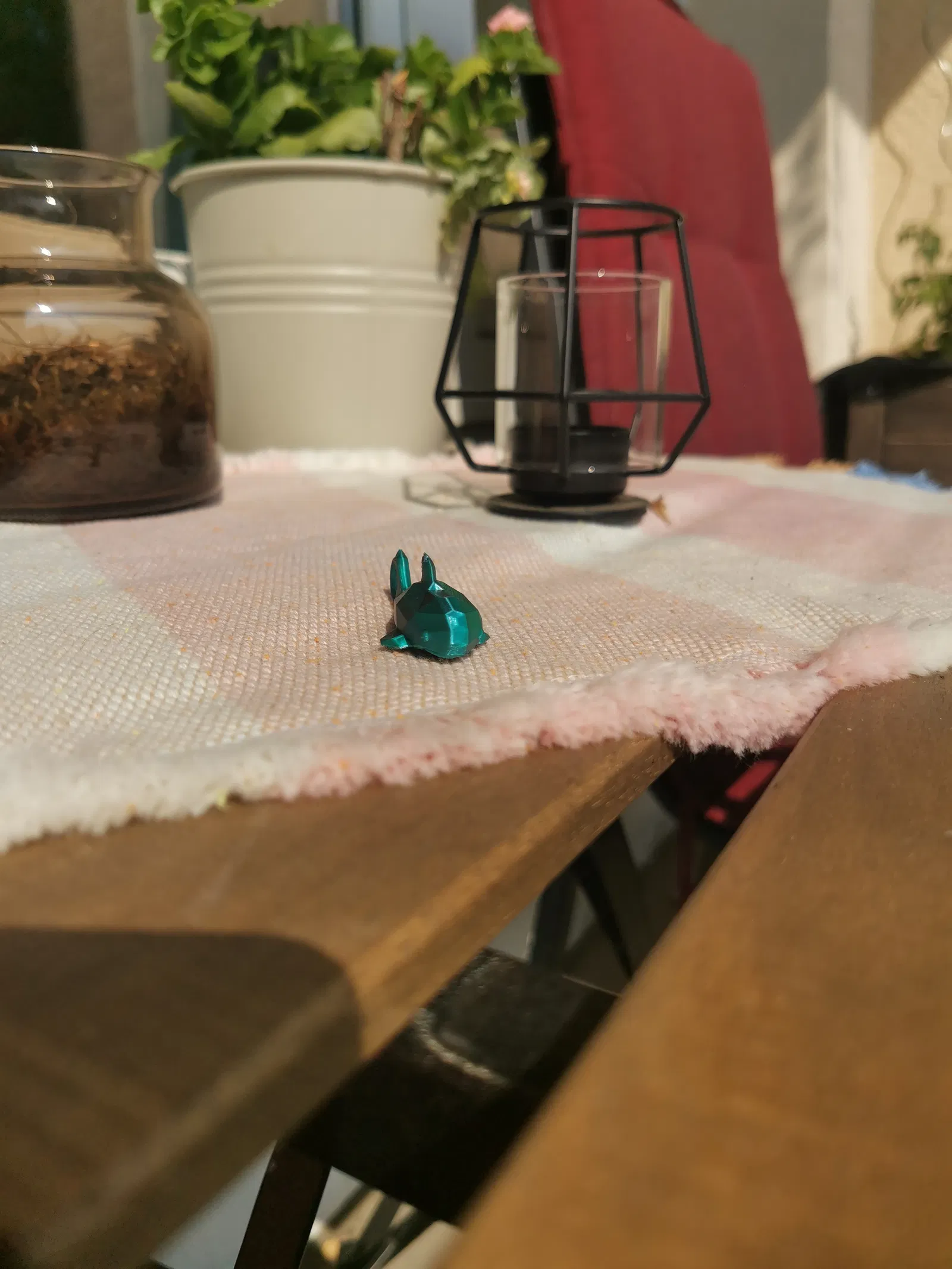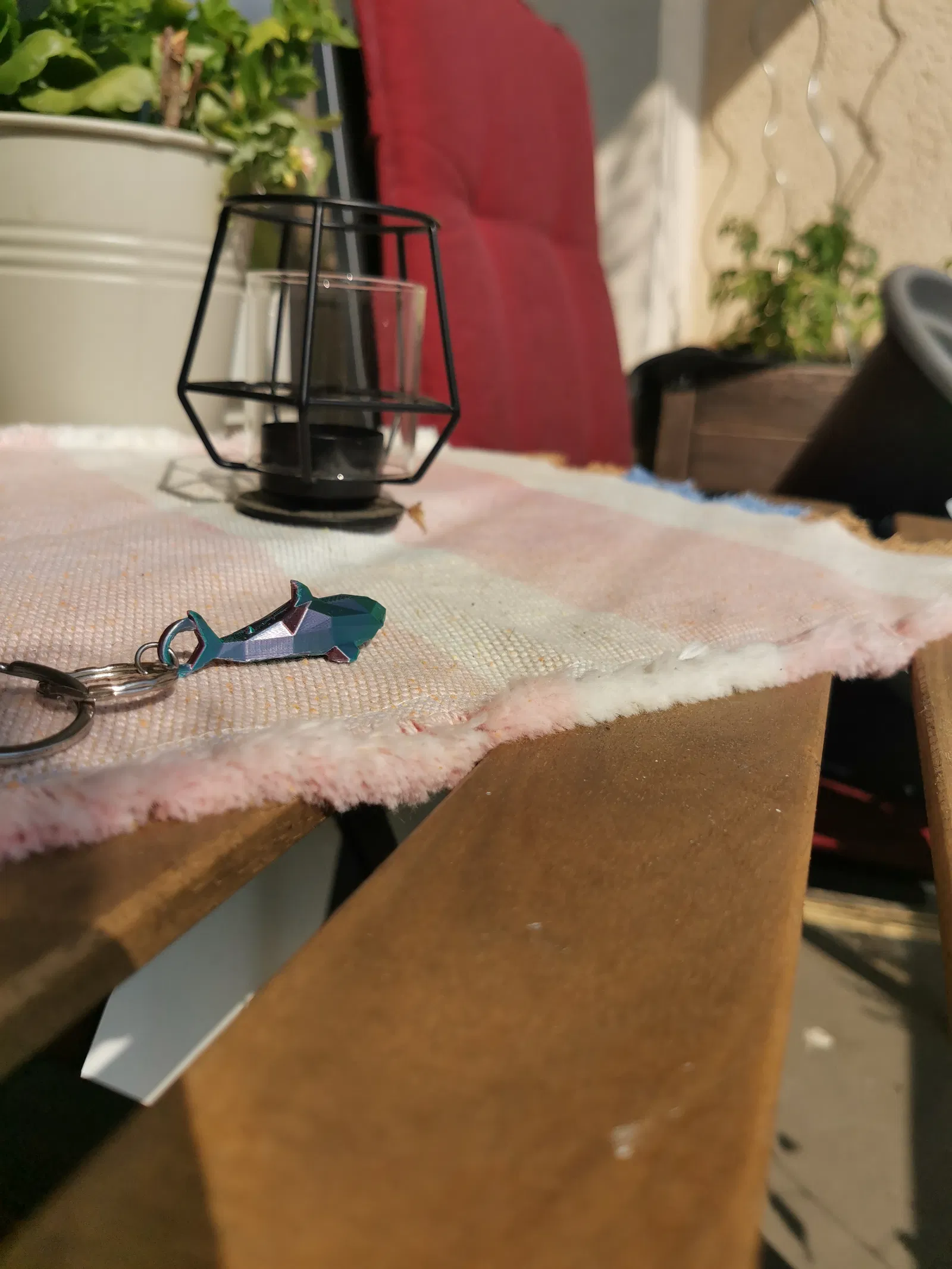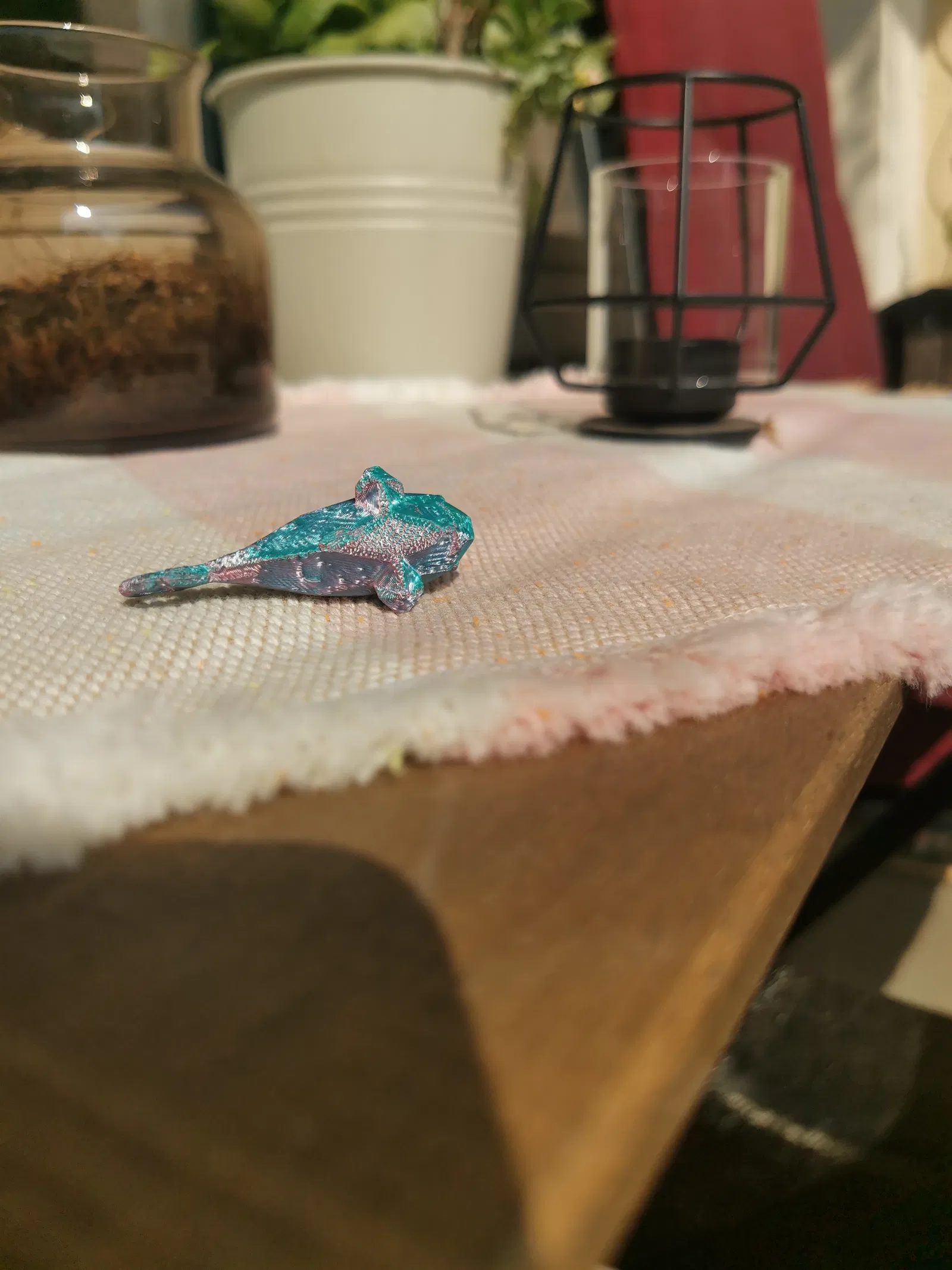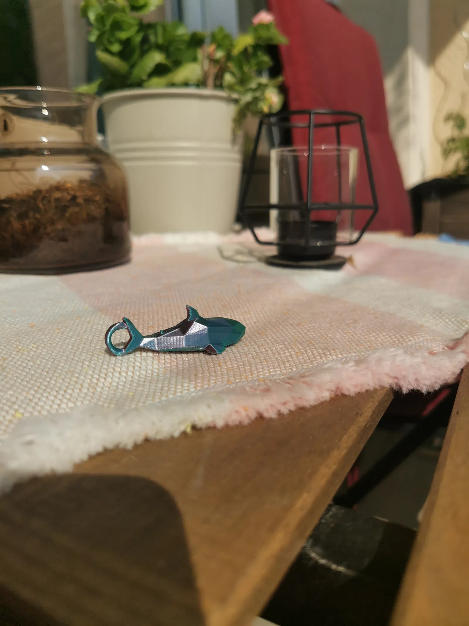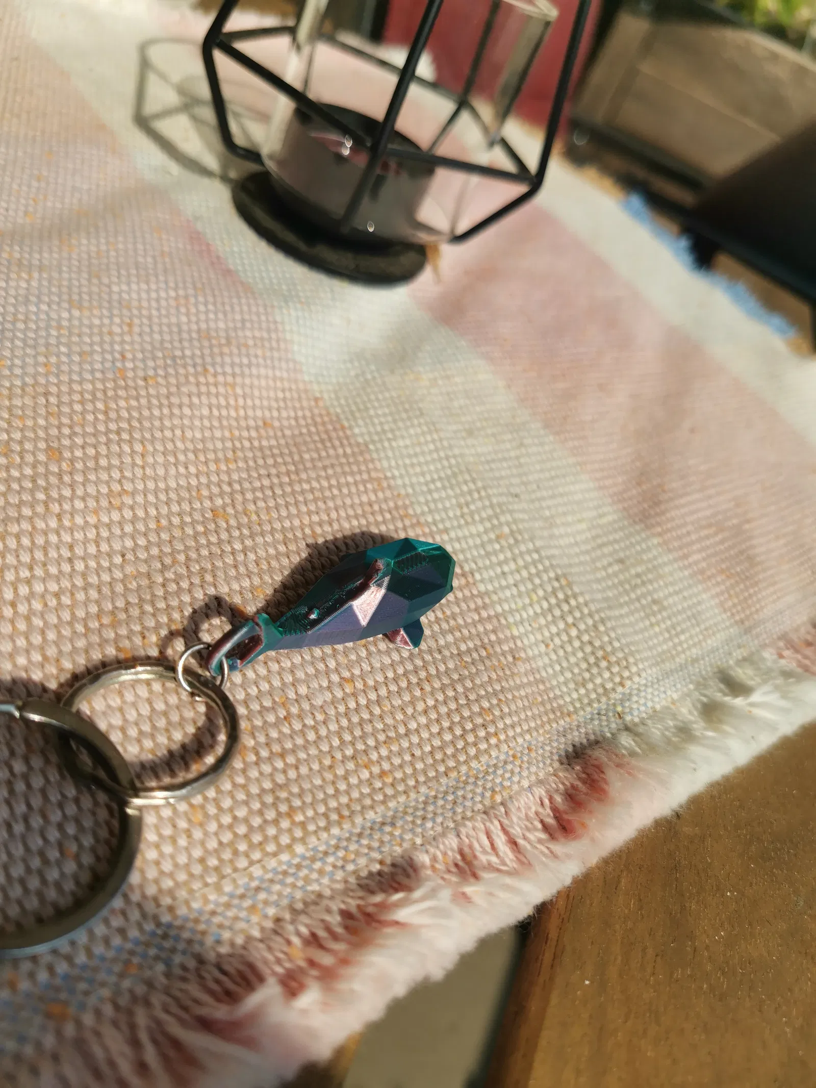 Chiếc móc khóa trong ảnh được in bằng sợi Eryone Dual Color Silk (Xanh mòng két & Đỏ cam).