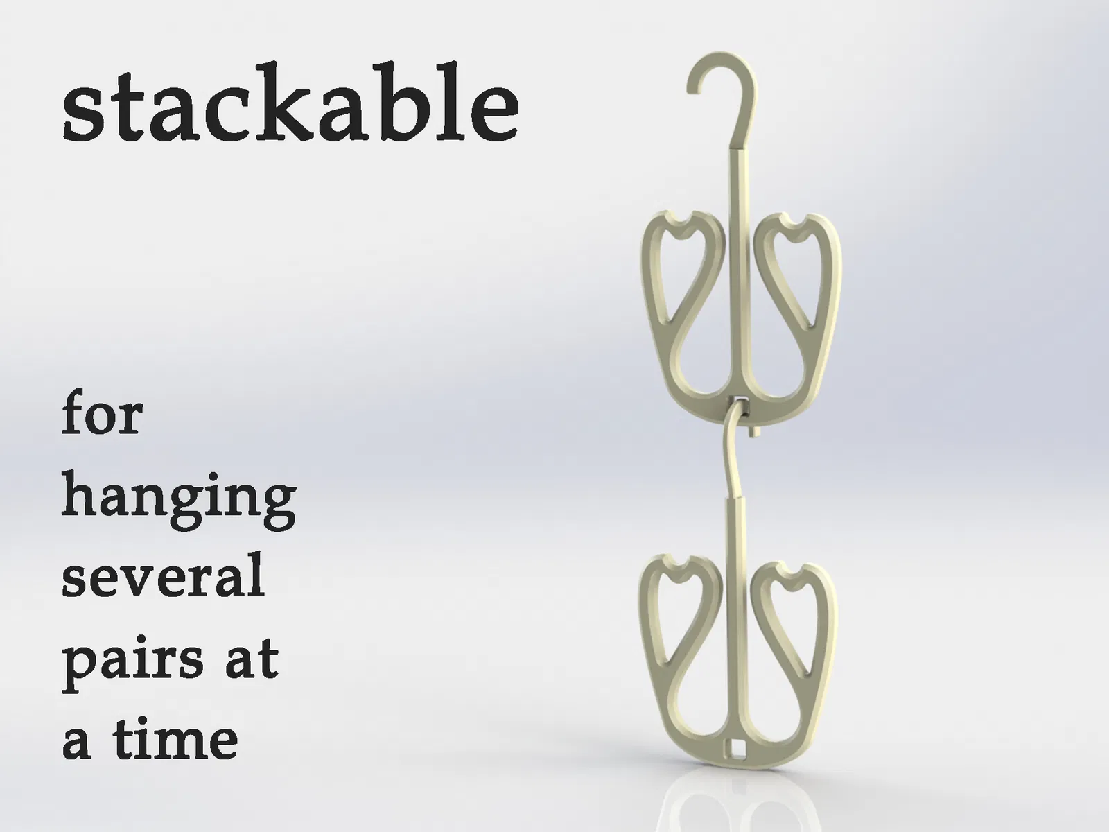 Có thể xếp chồng và kết hợp: Bạn có thể dễ dàng kết nối nhiều móc treo lại với nhau để treo nhiều đôi giày một cách gọn gàng và ngăn nắp. Thiết kế này lý tưởng cho những không gian chật hẹp và tủ quần áo nhỏ, giúp tối đa hóa không gian lưu trữ.