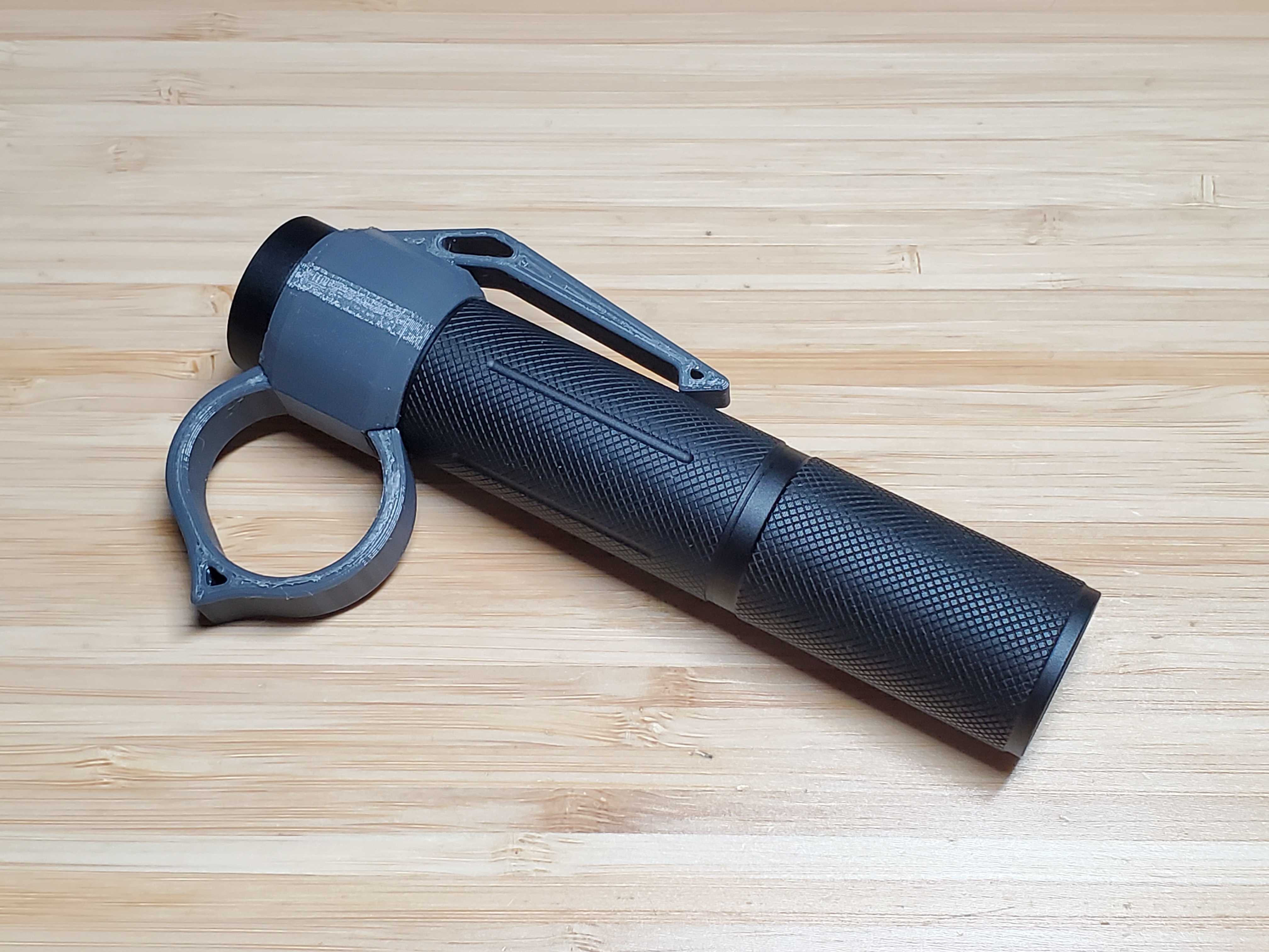 Kiểu dáng lấy cảm hứng từ dòng phụ kiện đèn pin Thyrm Switchback, bộ in 3 món này kết hợp lại để trang bị cho đèn pin Convoy S6 của bạn một kẹp túi tiện dụng cùng với một vòng đeo ngón tay để cầm nắm chắc chắn trong các tình huống chiến thuật (hoặc phong cách chiến thuật)!