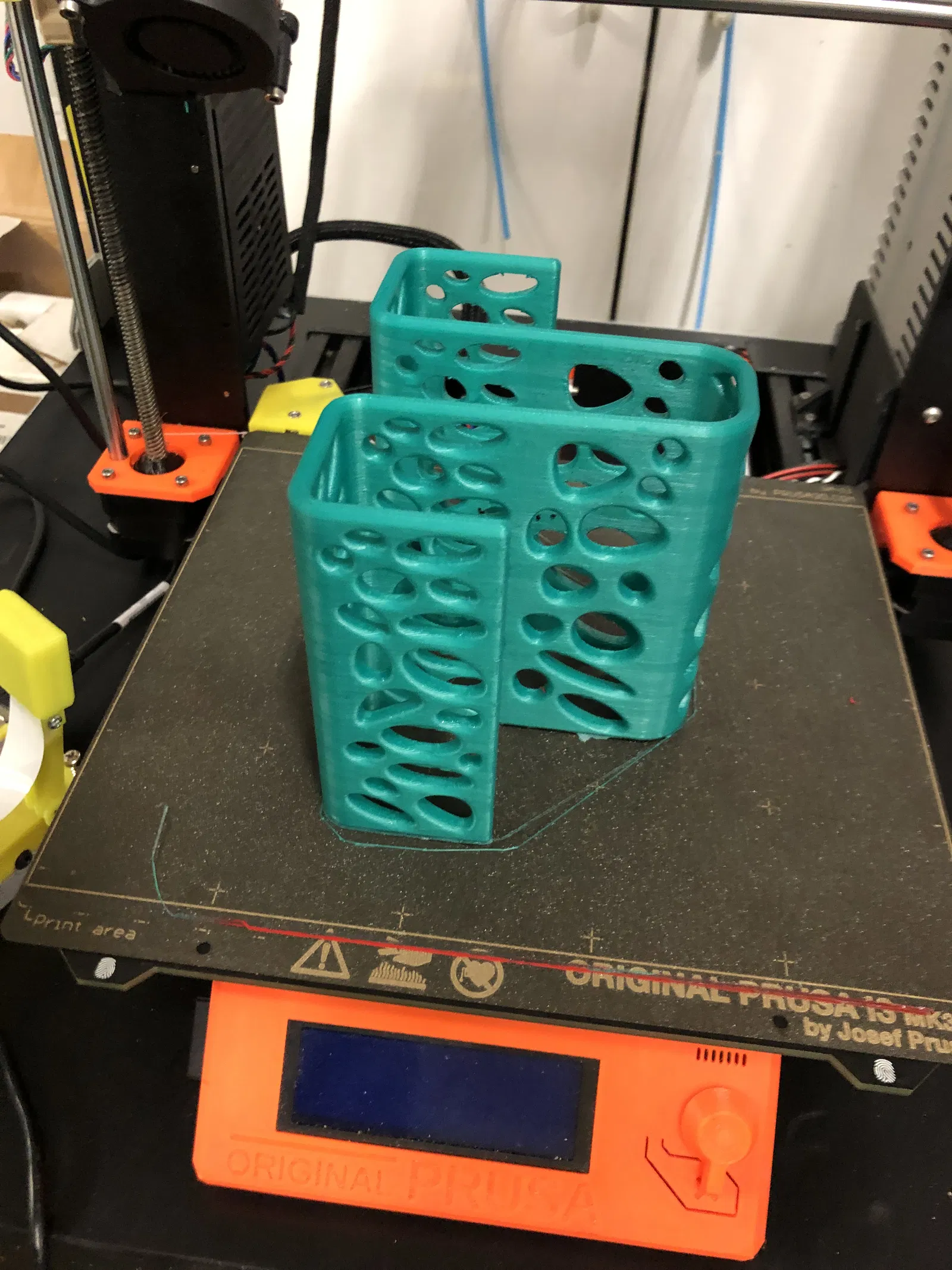 PLA và PETG không an toàn với máy rửa chén. Bị chảy trong máy rửa chén. ASA, ABS an toàn với máy rửa chén. Cái PLA của tôi bị biến dạng trong máy rửa chén. PETG cũng bị biến dạng sau một thời gian. Phần giữa rộng 35cm và toàn bộ cục này cao khoảng 100cm. Mấy cái lỗ cắm bọt biển rộng khoảng 40cm.