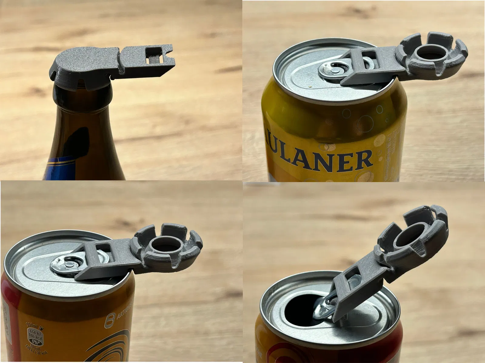 Mô hình lai kết hợp nắp chai và nắp lon, giữ cho côn trùng không bay vào. Có thể dùng để mở lon và in bằng PLA hoặc PETG. Phiên bản R02 và R03 đã được cải thiện độ cứng và khả năng tương thích với các loại lon khác nhau.