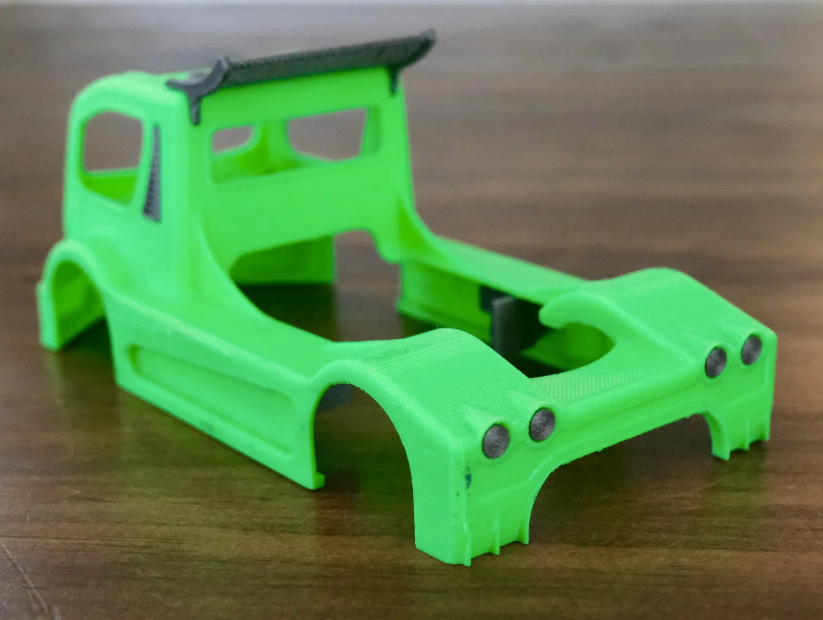 Thân xe bán tải Mini Z cho xe 98mm, có khoảng trống cho motor pod. Bản remix này chỉnh sửa phần dè sau, thêm kẹp hông, và cắt kẹp trước để cải thiện việc lắp ráp và độ chắc chắn.