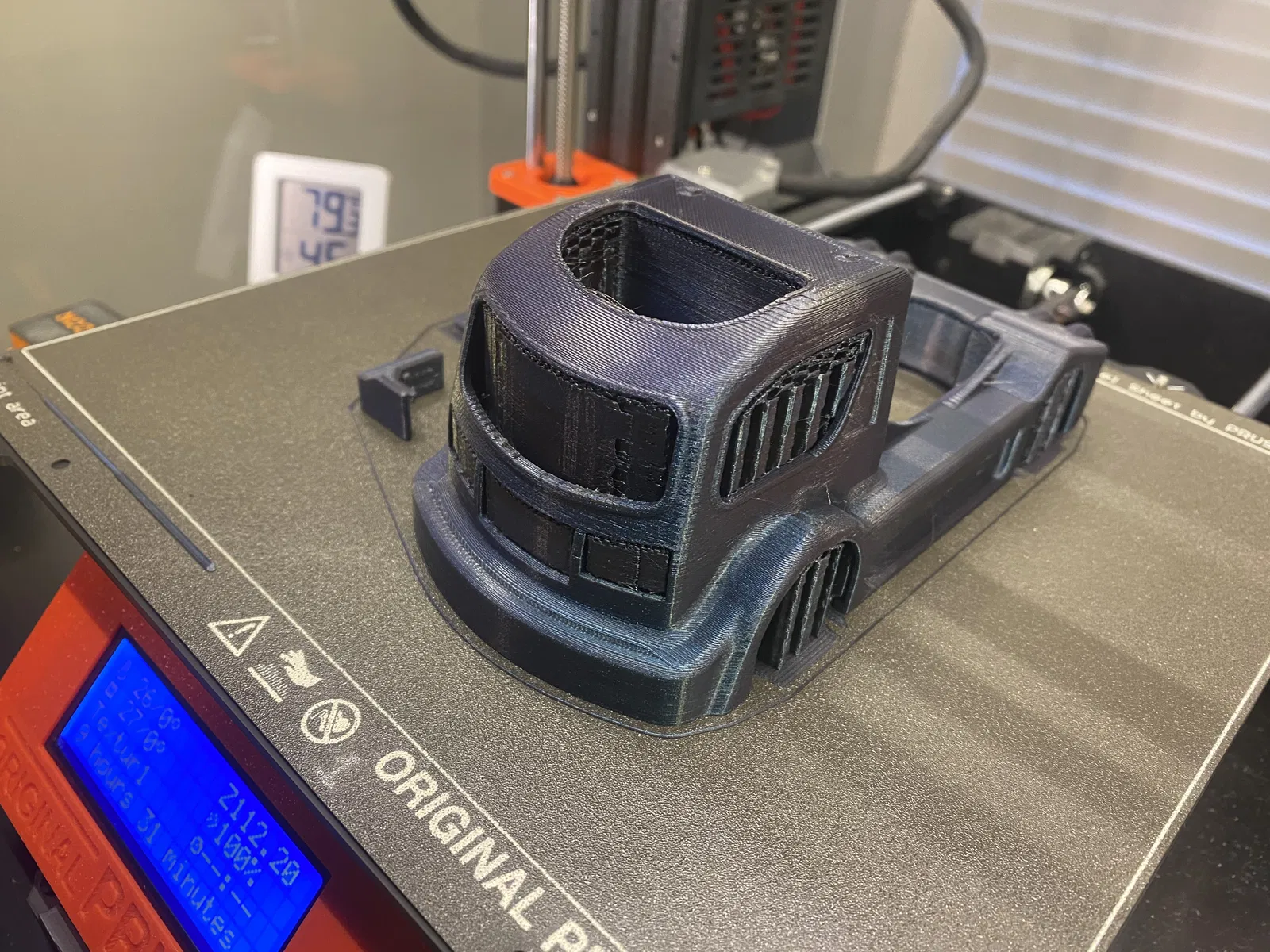 In bằng FlashForge Burnt Titanium PETG ở lớp 0.2, 4 perimeters, 25% infill.