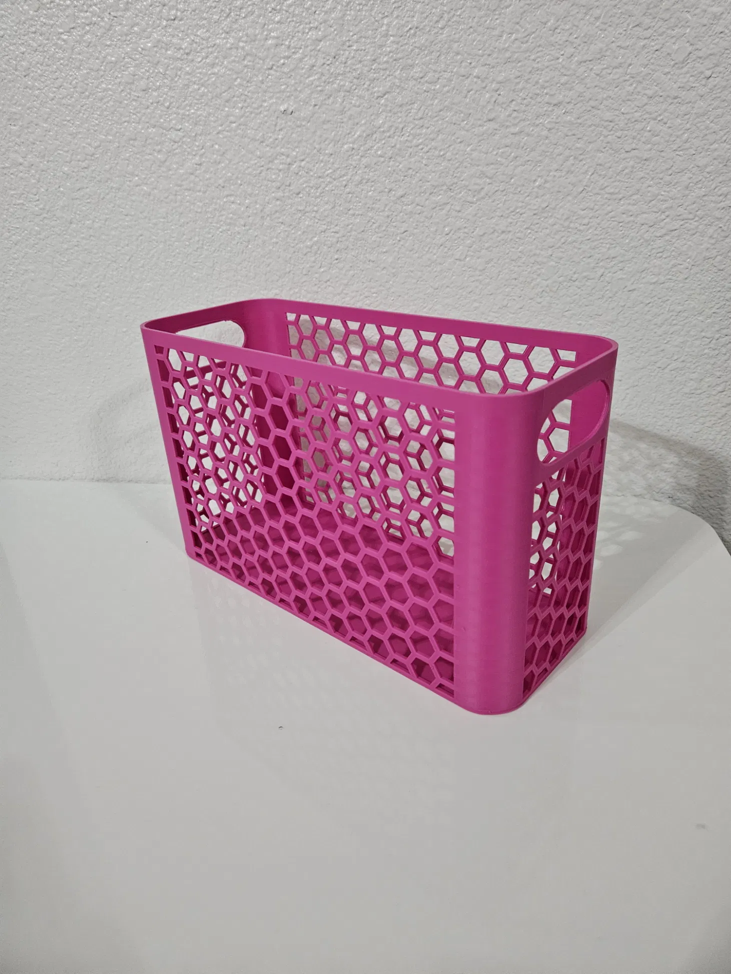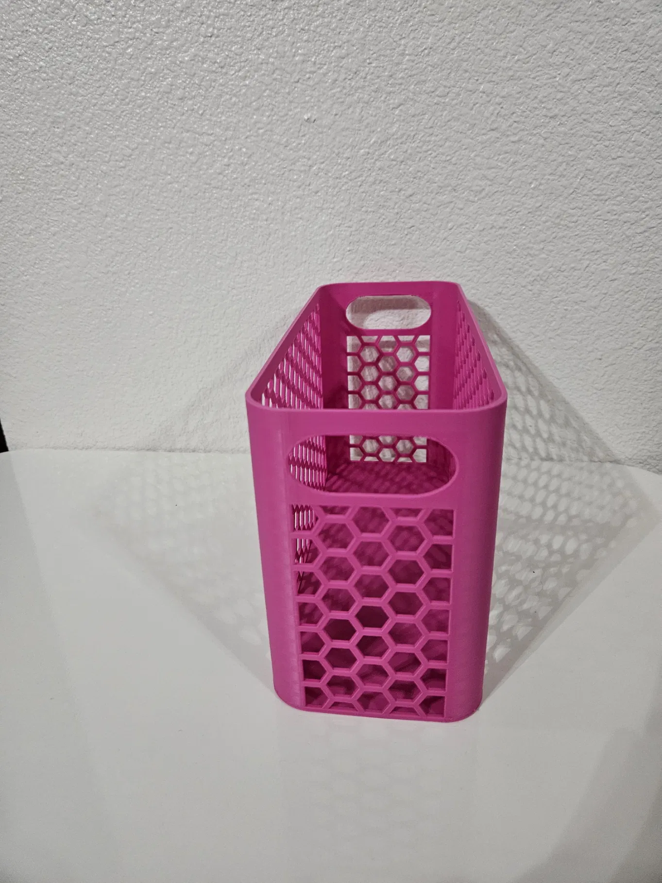 Kích thước giỏ: 10in x 4in x 6in (254mm x 101.6mm x 152.4mm). Mẫu in hình tổ ong độc đáo, thích hợp để đựng đồ. In trên Bambu A1 không cần support.